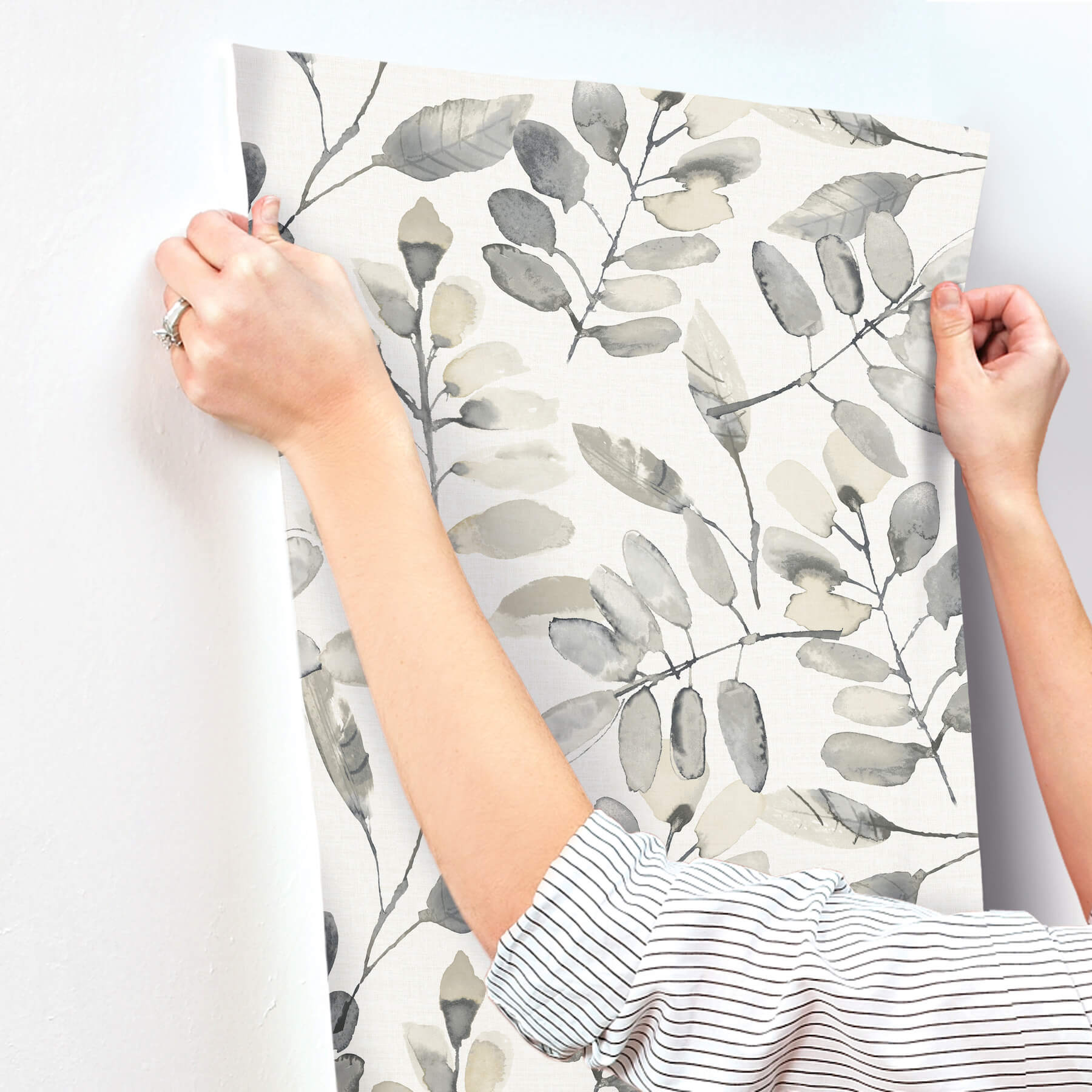 Bring the outdoors in with this serene botanical design featuring lush fronds inked in rich greys and soft beige watercolors against a cream backdrop imbued with a loose, linen weave. Pinnate is a prepasted, non woven blend wallpaper measuring 20.5 inches wide by 33 feet long, covering approximately 56.4 square feet per roll. Oak & Moss Woodland Wonders by Chesapeake is a nature inspired wallpaper collection featuring whimsical botanicals, stylized forests, and charming woodland creatures. Soft watercolor palettes, linen textures, and classic patterns like florals, damasks, stripes, and faux grasscloth create a cozy, elevated look perfect for bedrooms, living rooms, and accent walls.