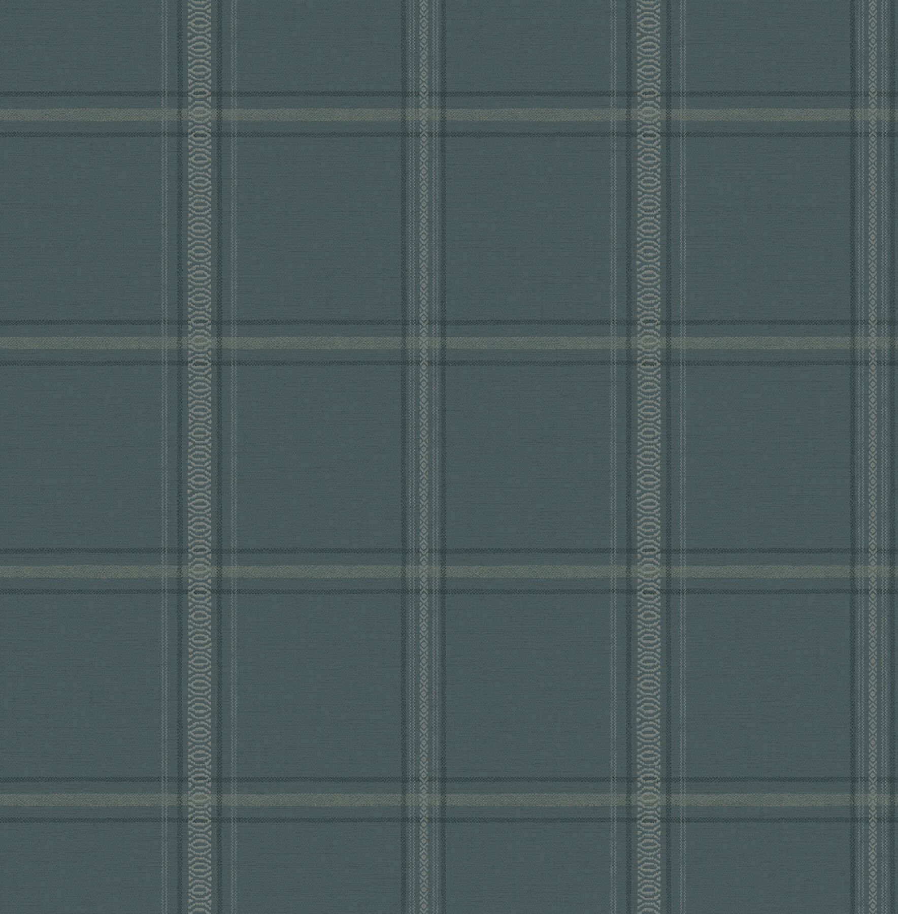 This embellished windowpane plaid wallpaper features vertical columns that alternate between narrow and wide diamond pattern detailing. Featured here in teal accented by pale green, pale grey, and dark teal. Auberge is an unpasted, non woven wallpaper measuring 20.5 inches wide by 33 feet long, covering approximately 56.4 square feet per roll. Oak & Moss Woodland Wonders by Chesapeake is a nature inspired wallpaper collection featuring whimsical botanicals, stylized forests, and charming woodland creatures. Soft watercolor palettes, linen textures, and classic patterns like florals, damasks, stripes, and faux grasscloth create a cozy, elevated look perfect for bedrooms, living rooms, and accent walls.