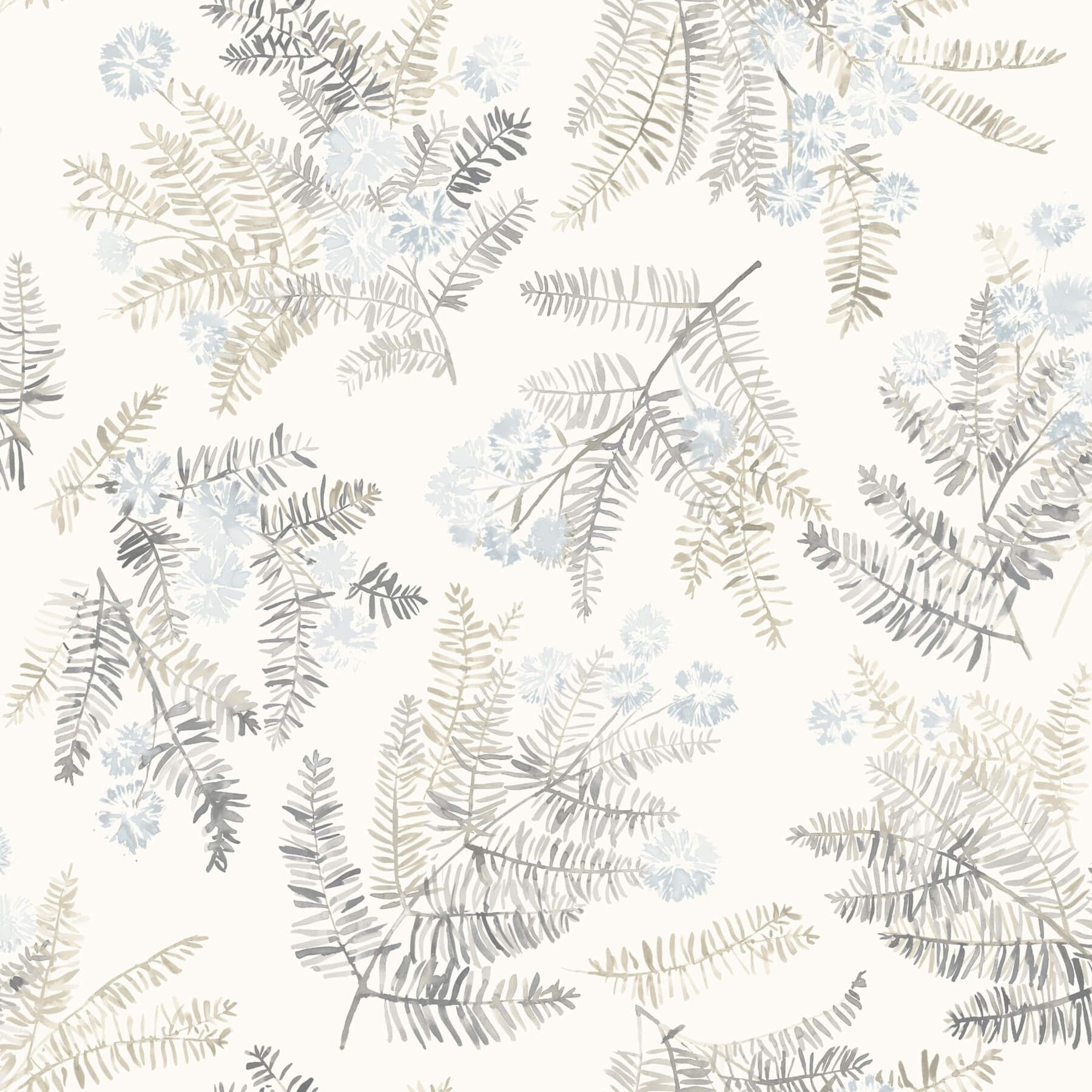 Simple, wild bouquets of feathery flowers and ferns bring a hint of romance to interiors. Featured here in a cool palette of soft blue, warm taupe, and cool grey against cream. Frith is a prepasted, surestrip wallpaper measuring 20.5 inches wide by 33 feet long, covering approximately 56.4 square feet per roll. Oak & Moss Woodland Wonders by Chesapeake is a nature inspired wallpaper collection featuring whimsical botanicals, stylized forests, and charming woodland creatures. Soft watercolor palettes, linen textures, and classic patterns like florals, damasks, stripes, and faux grasscloth create a cozy, elevated look perfect for bedrooms, living rooms, and accent walls.
