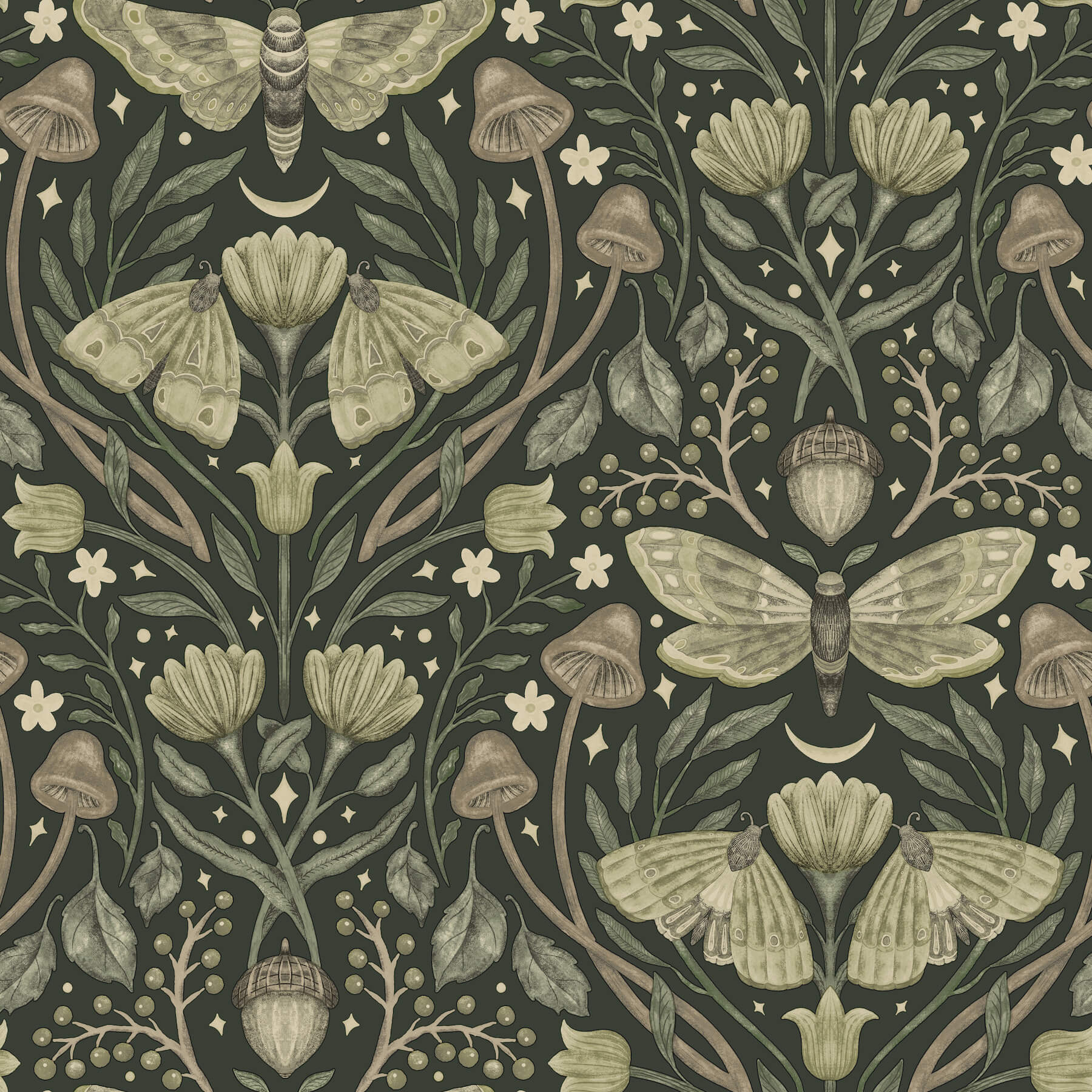 Chesapeake Oak & Moss Mystic Moth Wallpaper - Dark Green