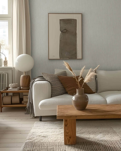 The textile inspired wallpaper Midolin has a vertical woven structure that, when sunlight dances across the surface, reveals the subtle interplay between shadow and light along the wall. Seen here in light grey. Midolin Sandsten is an unpasted, non woven wallpaper measuring 20.9 inches wide by 33 feet long, covering approximately 57.5 square feet per roll. The William Morris Hidden Treasures Volume II collection by A-Street Prints re-imagines the legendary designs of William Morris with a fresh, contemporary touch. Inspired by the rich patterns and natural motifs of the Arts & Crafts movement, this collection brings timeless British heritage into today's homes with graceful florals, intricate botanicals, and flowing vines.