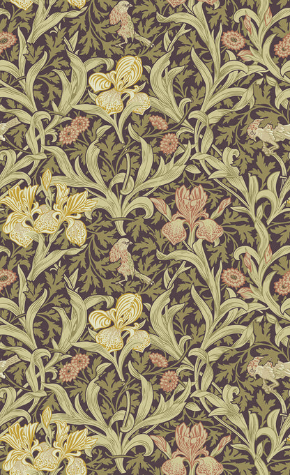 Pattern Iris, designed by Morris’s protégé John Henry Dearle, features marigolds and their foliage playfully interacting with small birds against a latticework of irises. This charming woodland vista is inked in shades of pale green, moss, golden ochre, off-white, pink, beige, and plum. Iris is an unpasted, non woven wallpaper measuring 20.9 inches wide by 33 feet long, covering approximately 57.5 square feet per roll. The William Morris Hidden Treasures Volume II collection by A-Street Prints re-imagines the legendary designs of William Morris with a fresh, contemporary touch. Inspired by the rich patterns and natural motifs of the Arts & Crafts movement, this collection brings timeless British heritage into today's homes with graceful florals, intricate botanicals, and flowing vines.