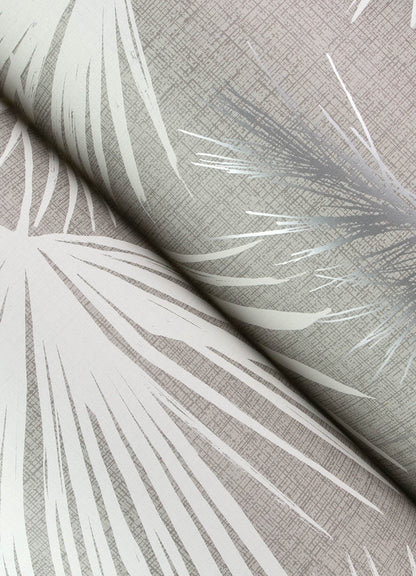Large white fan palms, accented by spindly metallic silver fronds, are given additional airiness with a grey backdrop imbued with loose, woven detailing. Hatteras is an unpasted, non woven wallpaper measuring 20.5 inches wide by 33 feet long, covering approximately 56.4 square feet per roll. Bring beachside serenity into your space with the Sea Salt collection by A-Street Prints. Inspired by the soothing ambiance of surf and sand, this unpasted wallpaper collection features tidal textures, coastal wildlife, and beachy botanicals in soft, airy color palettes. Designed to evoke the relaxed feel of seaside living, Sea Salt adds natural elegance to bedrooms, bathrooms, and beyond, perfect for creating a peaceful coastal retreat at home.
