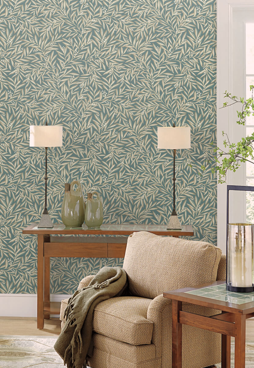 Ronald Redding Arts & Crafts Rowan Wallpaper - Teal