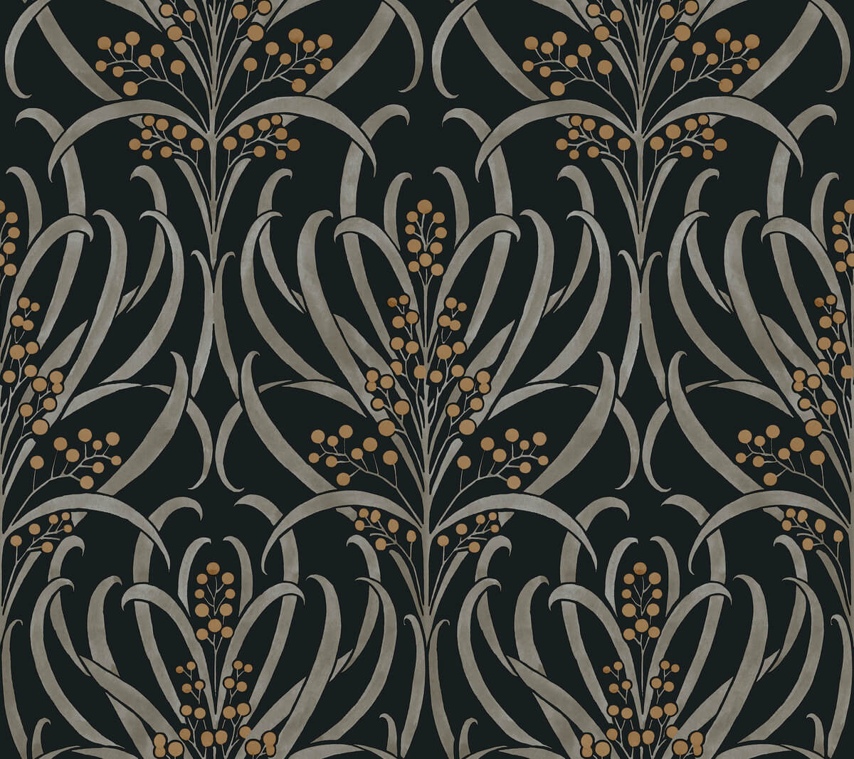 Ronald Redding Arts & Crafts Calluna Wallpaper - Black & Gold