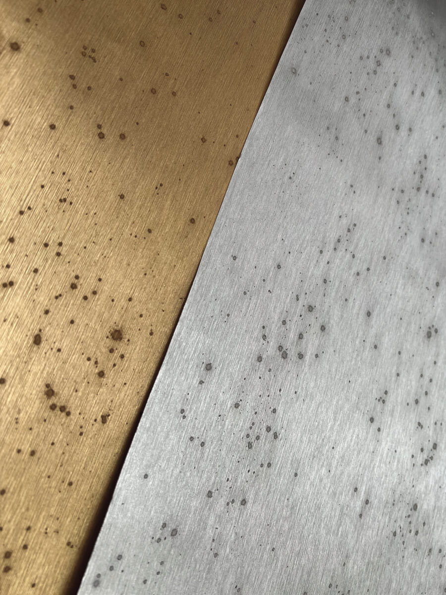 The plain metallic of pattern Burnished Patina is printed with the feeling of a naturally aged metallic finish. This Ronald Redding collection of fine wallpaper is dedicated to the vision of the Arts and Crafts movement. Featuring designs inspired by archival and original art created by design pioneer C.F.A. Voysey, these patterns exemplify the concepts of simplicity, craftsmanship, and the use of natural materials, which continue their impact on every aspect of today's interiors.