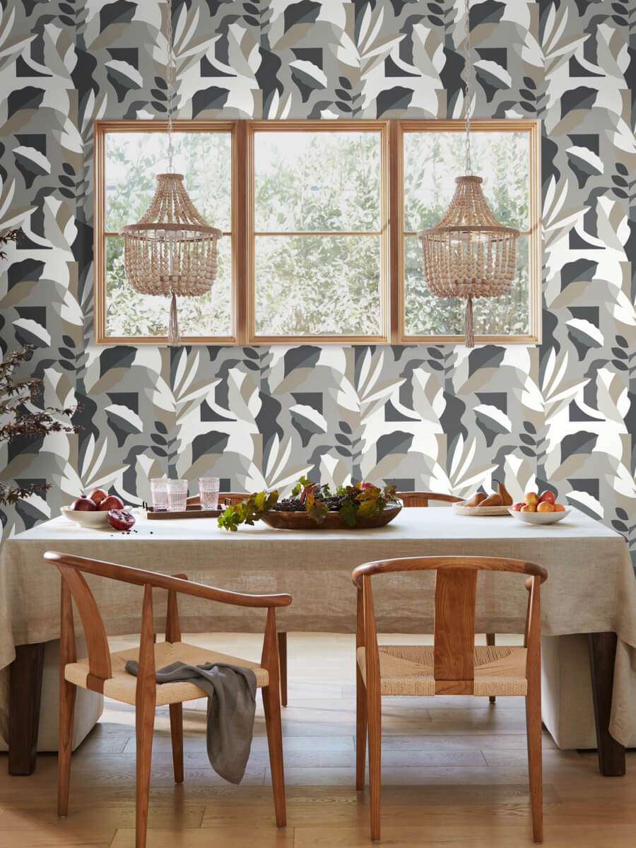 Tropical flora has been reduced and reimagined as a series of striking color blocked forms in Papier Colle, the leaves inked in shades of grey, white, and black, This Papier Colle Wallpaper measures approximately 27 inches wide by 27 feet long, measuring approximately 60.8 square feet per roll. Artistic experimentation with the interplay of form, color and texture has led to an avant-garde reimagining of familiar design motifs. Artistic experimentation with the interplay of form, color and texture has led to an avant garde reimagining of familiar design motifs in the Artistic Abstracts wallpaper collection by York Wallcoverings.