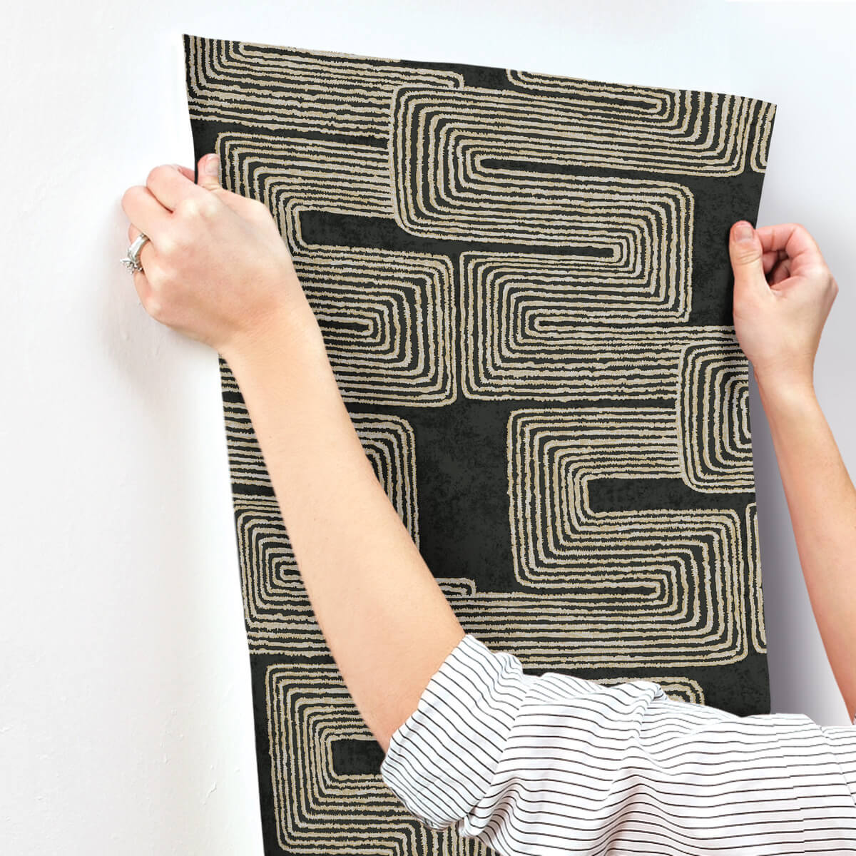 York Artistic Abstracts Zulu Thread Wallpaper - Black & Gold