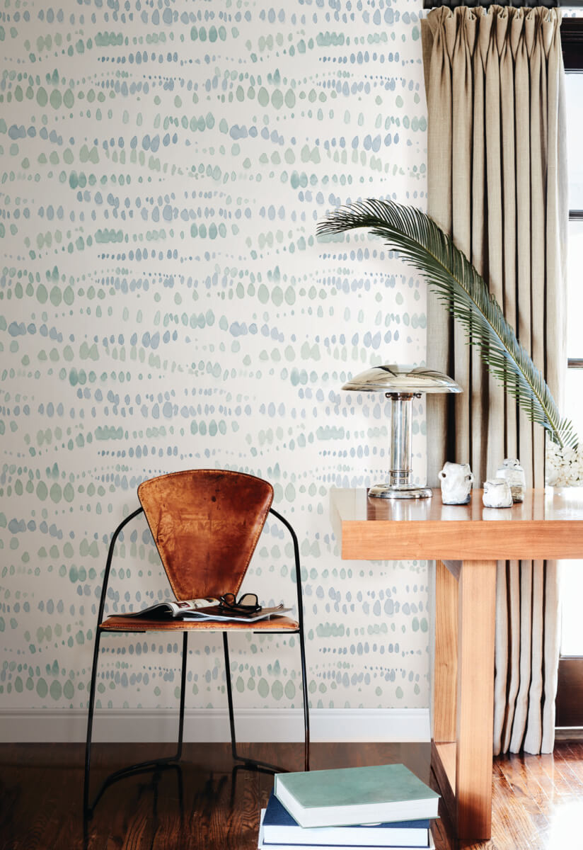 Rows of sea green, blue, and aqua watercolors add decorative drips in artistically refined Dewdrops. This Dewdrops Wallpaper measures approximately 27 inches wide by 27 feet long, measuring approximately 60.8 square feet per roll. Artistic experimentation with the interplay of form, color and texture has led to an avant-garde reimagining of familiar design motifs. Artistic experimentation with the interplay of form, color and texture has led to an avant garde reimagining of familiar design motifs in the Artistic Abstracts wallpaper collection by York Wallcoverings.
