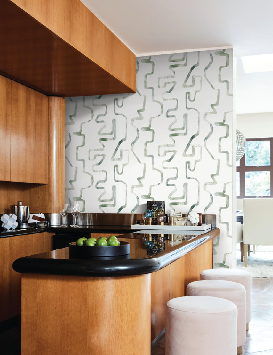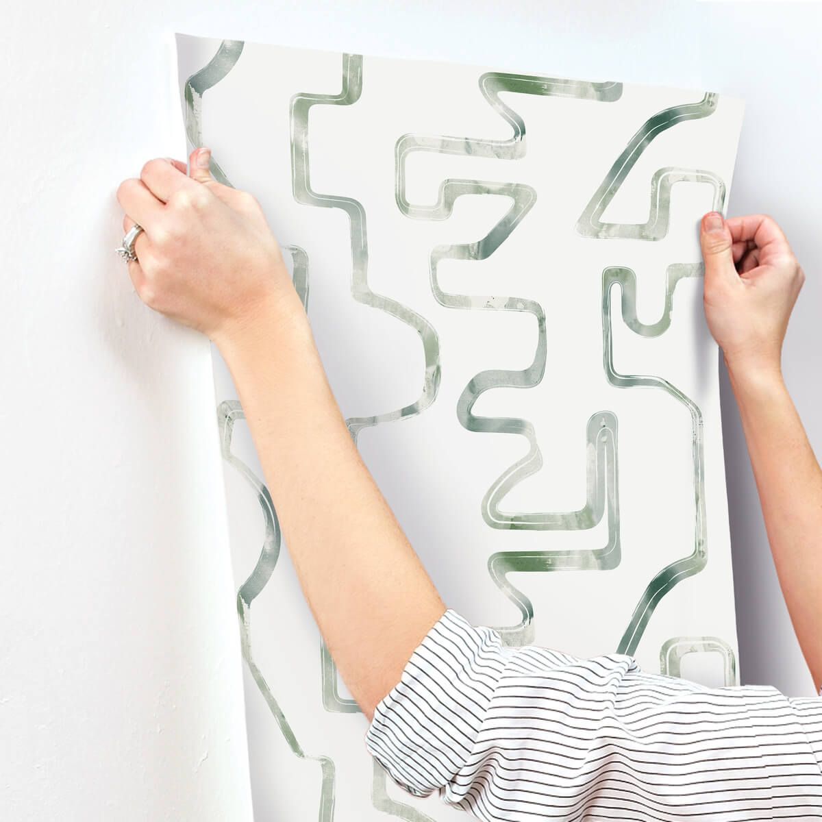 Abstract Aura's free-flowing lines hold hidden depth with marbled green and light grey watercolor detailing. This Abstract Aura Wallpaper measures approximately 27 inches wide by 27 feet long, measuring approximately 60.8 square feet per roll. Artistic experimentation with the interplay of form, color and texture has led to an avant-garde reimagining of familiar design motifs. Artistic experimentation with the interplay of form, color and texture has led to an avant garde reimagining of familiar design motifs in the Artistic Abstracts wallpaper collection by York Wallcoverings.