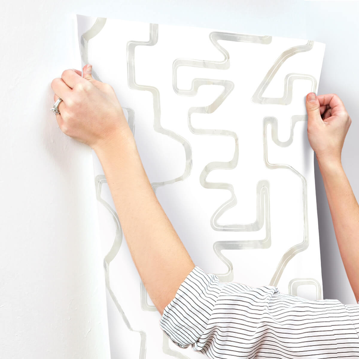 Abstract Aura's free-flowing lines hold hidden depth with marbled, light grey watercolor detailing. This Abstract Aura Wallpaper measures approximately 27 inches wide by 27 feet long, measuring approximately 60.8 square feet per roll. Artistic experimentation with the interplay of form, color and texture has led to an avant-garde reimagining of familiar design motifs. Artistic experimentation with the interplay of form, color and texture has led to an avant garde reimagining of familiar design motifs in the Artistic Abstracts wallpaper collection by York Wallcoverings.