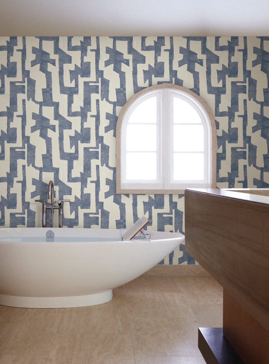 York Artistic Abstracts Modern Tribal Wallpaper - Blue