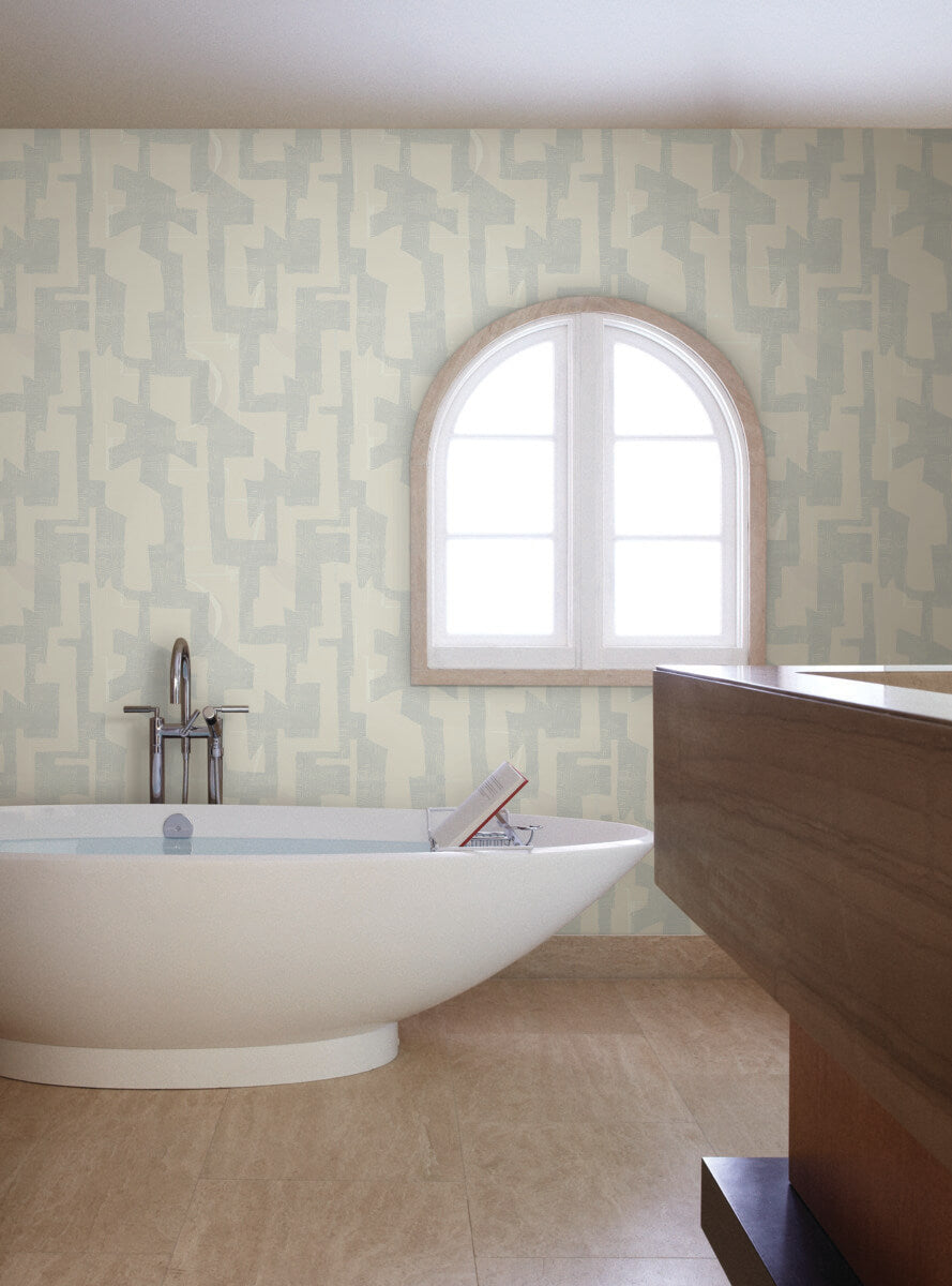 A subtly swirled light grey backdrop receives bold stamping with Modern Tribal's intricately patterned and iridescent steel-blue geometrics. This Modern Tribal Wallpaper measures approximately 27 inches wide by 27 feet long, measuring approximately 60.8 square feet per roll. Artistic experimentation with the interplay of form, color and texture has led to an avant-garde reimagining of familiar design motifs. Artistic experimentation with the interplay of form, color and texture has led to an avant garde reimagining of familiar design motifs in the Artistic Abstracts wallpaper collection by York Wallcoverings.
