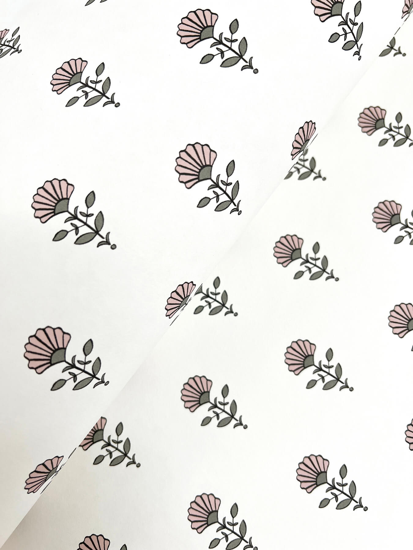 Sweet but not too precious, this petite floral wallpaper blends traditional elegance with modern appeal. The pink, fan-shaped flowers sit atop dainty, green-leafed stems, the soft colors crisp against the white backdrop. Artwork by Rachel Rogers. Libby is an unpasted, non woven wallpaper. Explore Erin Gates stunning wallpaper collection, blending timeless floral and chic geometric patterns. Re-imagined for modern homes, this collection reflects the New York Times bestselling author's passion for pattern and color.