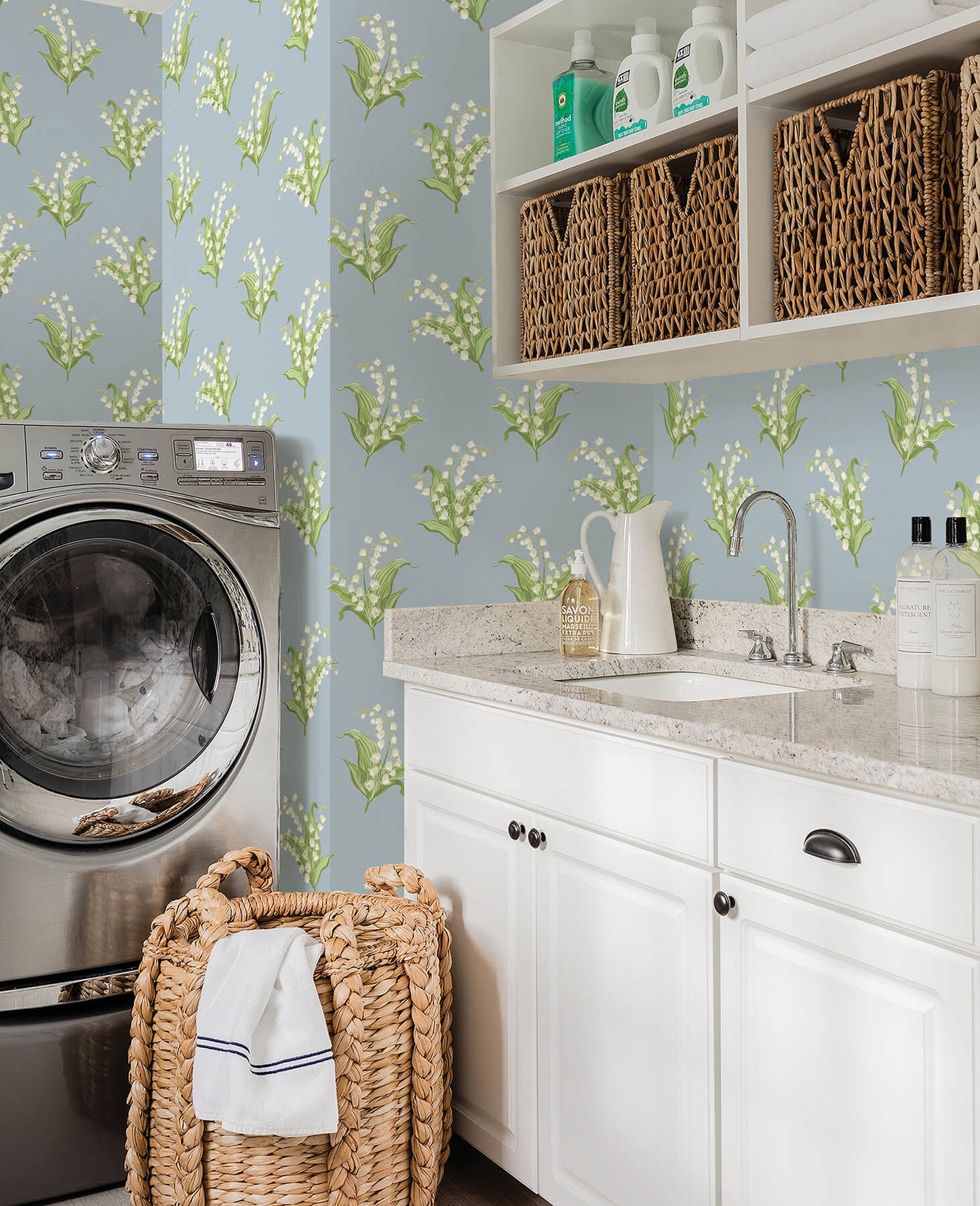 Erin Gates Farmington Lily of the Valley Wallpaper - Blue Heather