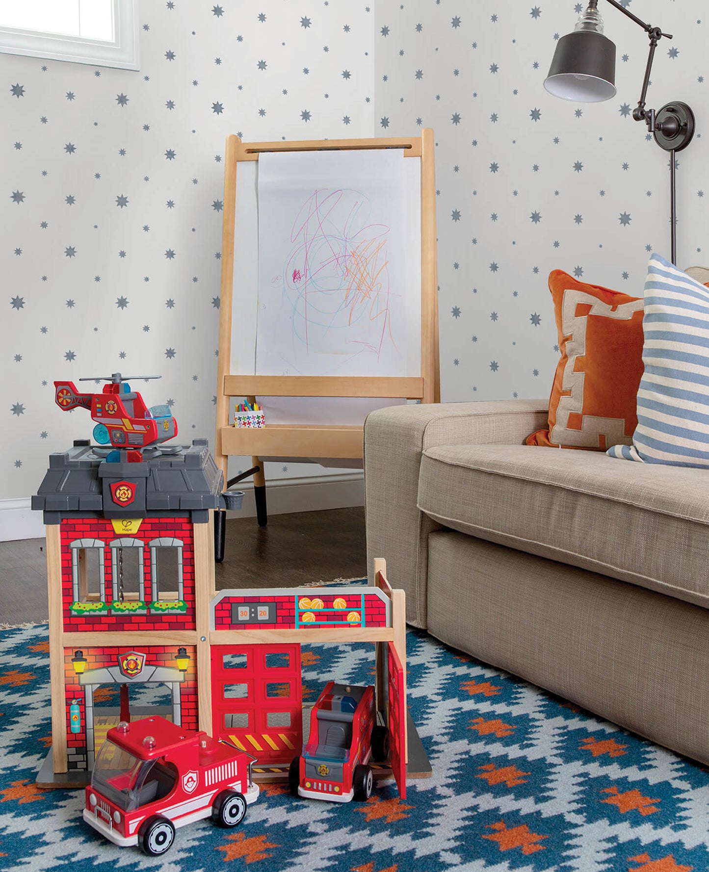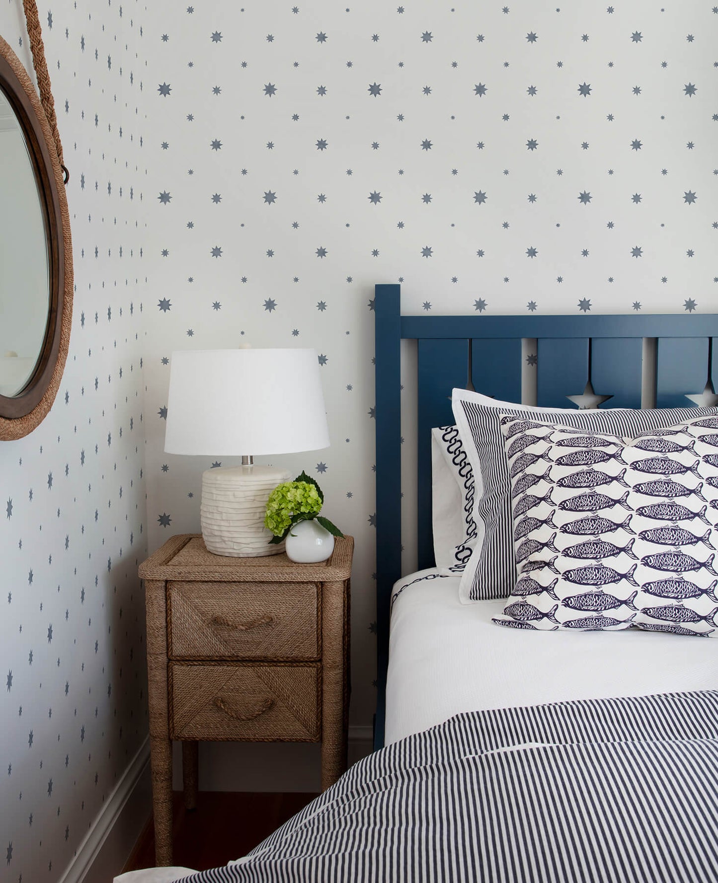 This charming and classic design offers endless styling options. The eight-point blue stars dot a soft white background, the various scale of the stars giving this wallpaper a light and airy feel. Artwork by Rachel Rogers. Henry is an unpasted, non woven wallpaper. Explore Erin Gates stunning wallpaper collection, blending timeless floral and chic geometric patterns. Re-imagined for modern homes, this collection reflects the New York Times bestselling author's passion for pattern and color.