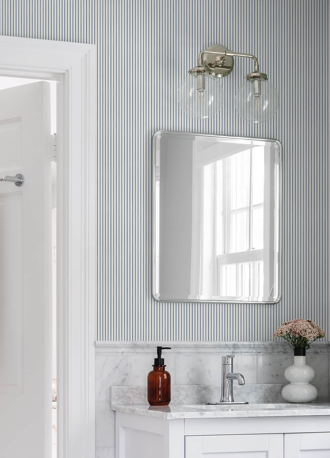Bring classic sophistication to your interiors with this timeless striped wallpaper. Thin pinstripes of navy are richly offset by a soft white backdrop. Oliver is an unpasted, non woven wallpaper. Explore Erin Gates stunning wallpaper collection, blending timeless floral and chic geometric patterns. Re-imagined for modern homes, this collection reflects the New York Times bestselling author's passion for pattern and color.