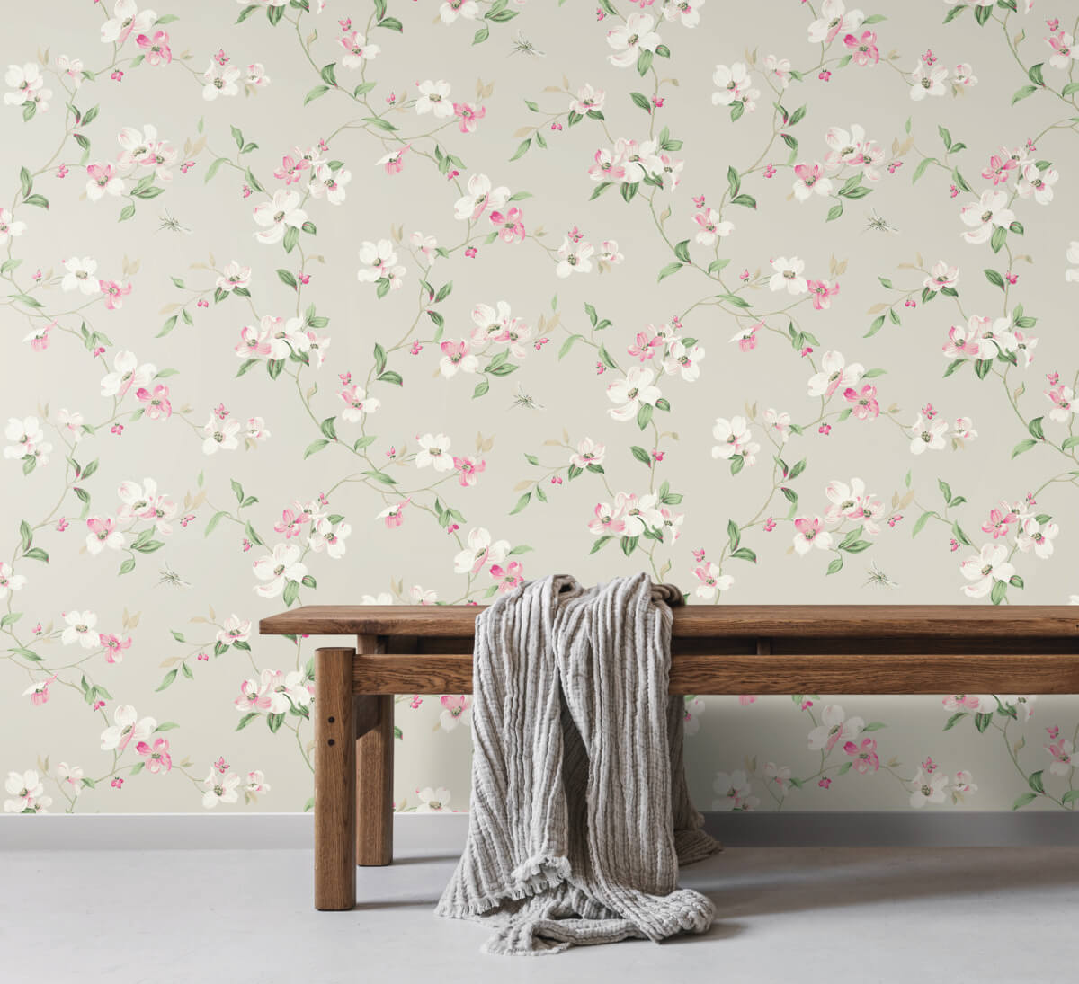 The first heralds of spring, the fleeting beauty of these blossoming trees is artistically rendered for your eternal enjoyment in pattern Dogwood with white and pink on taupe. This Dogwood Wallpaper measures approximately 20.5 inches wide by 33 feet long, measuring approximately 56.4 square feet per roll. Florals speak the language of ever-evolving style with instant connection and iconic form that confidently compliments any space and every design signature.