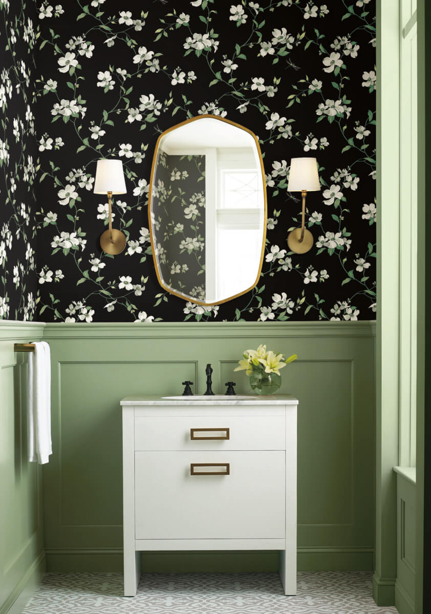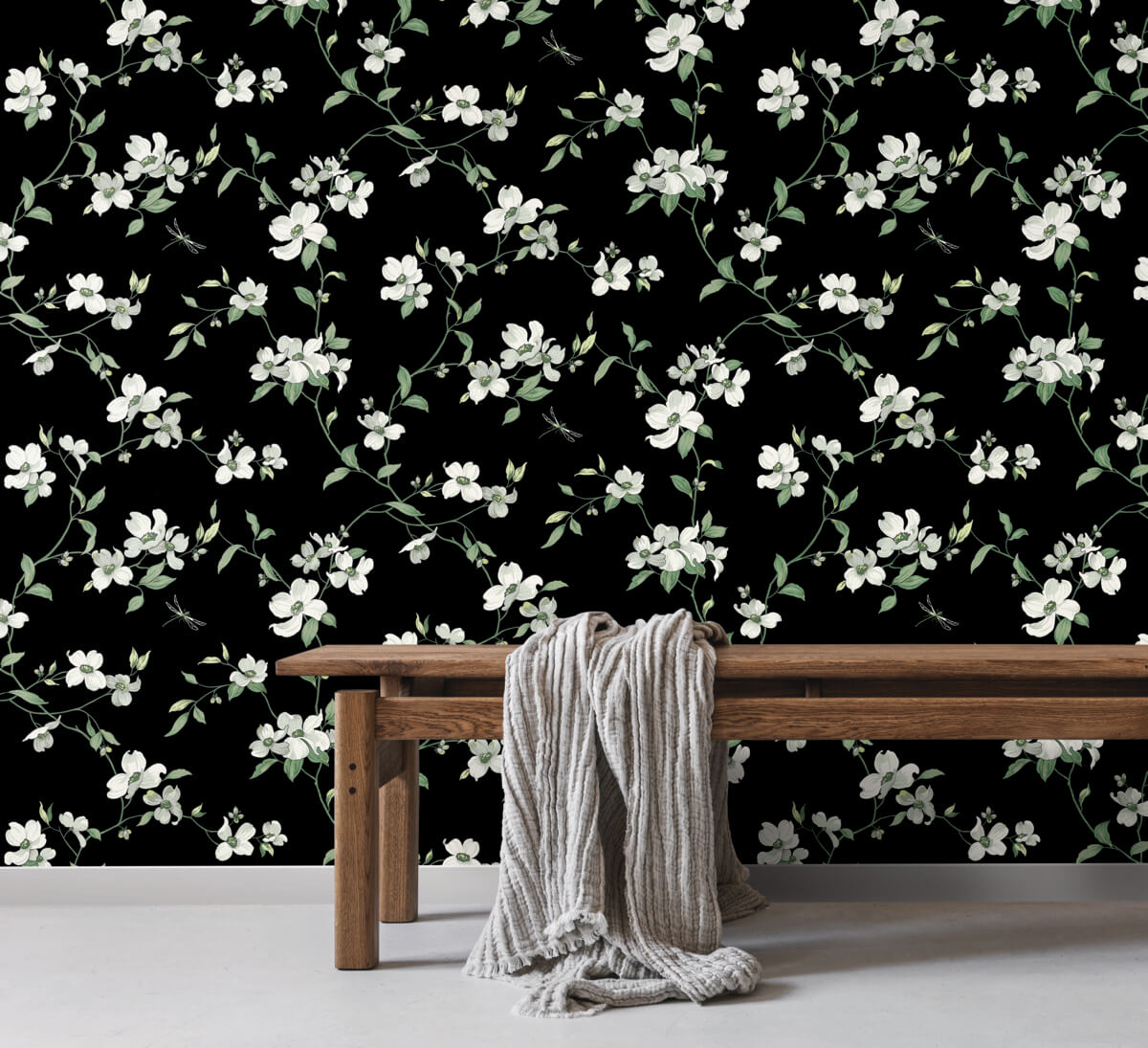 The first heralds of spring, the fleeting beauty of these blossoming trees is artistically rendered for your eternal enjoyment in pattern Dogwood with white on black. This Dogwood Wallpaper measures approximately 20.5 inches wide by 33 feet long, measuring approximately 56.4 square feet per roll. Florals speak the language of ever-evolving style with instant connection and iconic form that confidently compliments any space and every design signature.