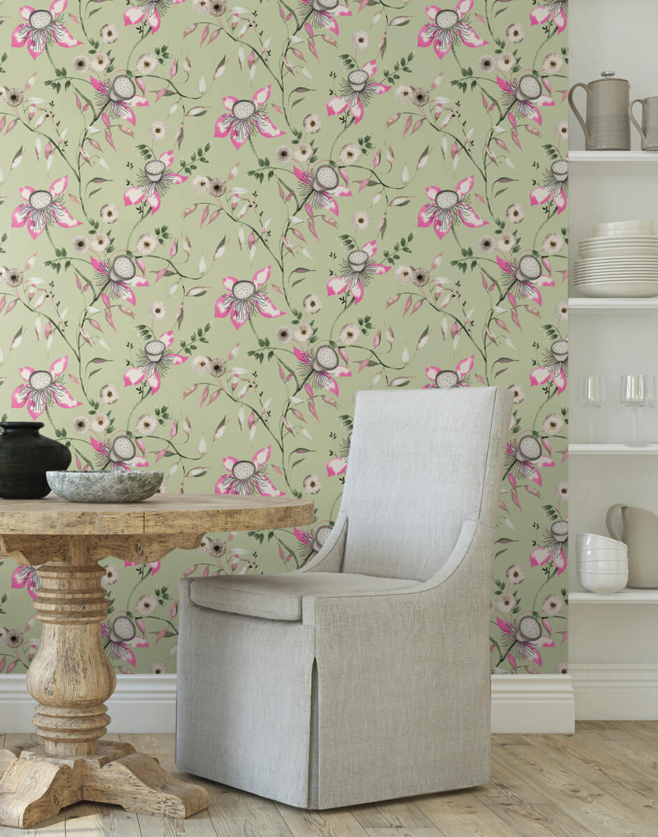 An artistic, fantasy garden with timeless chinoiserie appeal bursts into life in pattern Dream Blossom with pink and green shades. This Dream Blossom Wallpaper measures approximately 27 inches wide by 27 feet long, measuring approximately 60.8 square feet per roll. Florals speak the language of ever-evolving style with instant connection and iconic form that confidently compliments any space and every design signature.