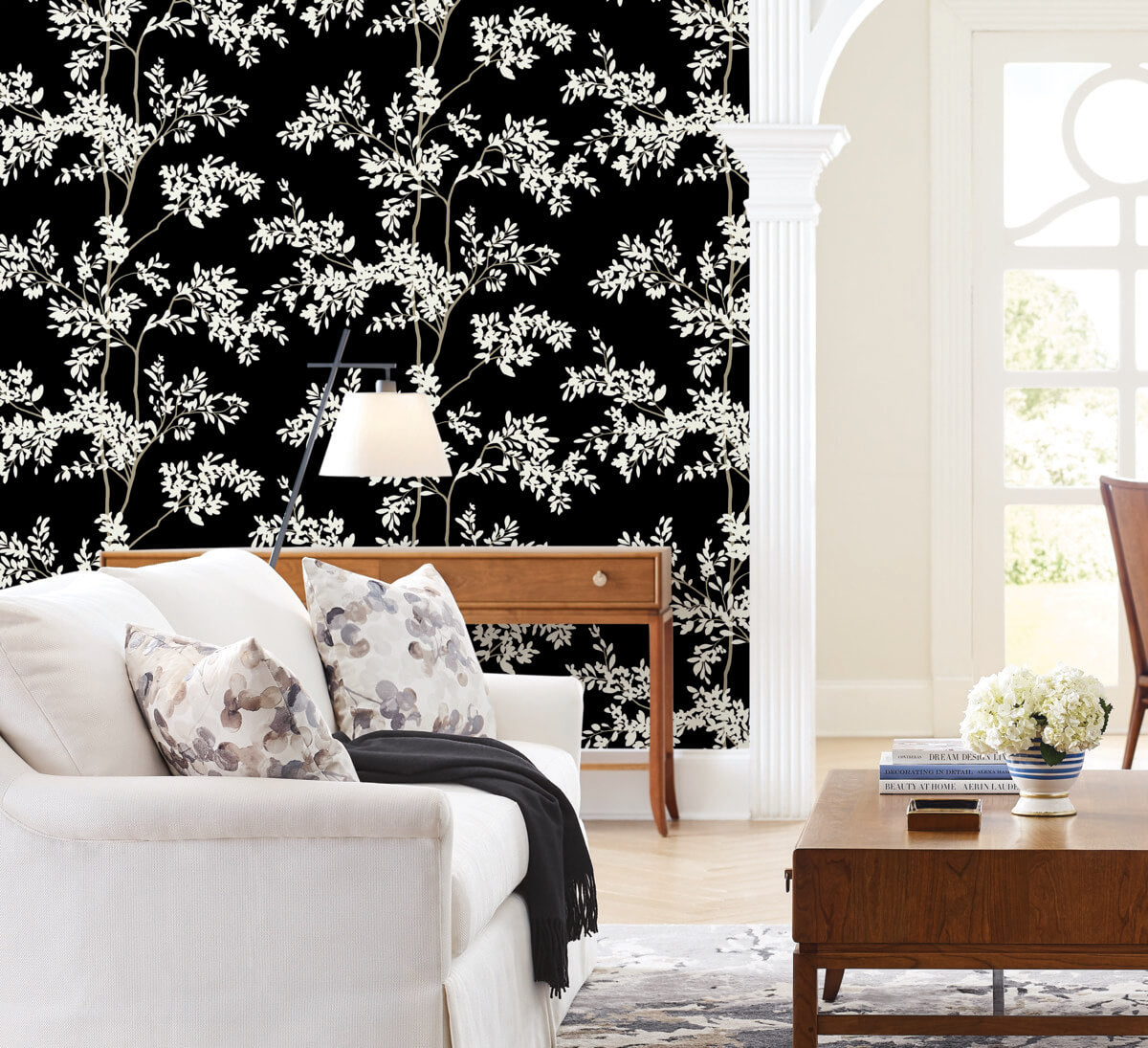 Spindly branches laden with delicate yet densely-packed leaves climb forever upwards in pattern Lunaria Silhouette in black and white. This Lunaria Silhouette Wallpaper measures approximately 27 inches wide by 27 feet long, measuring approximately 60.8 square feet per roll. Florals speak the language of ever-evolving style with instant connection and iconic form that confidently compliments any space and every design signature.