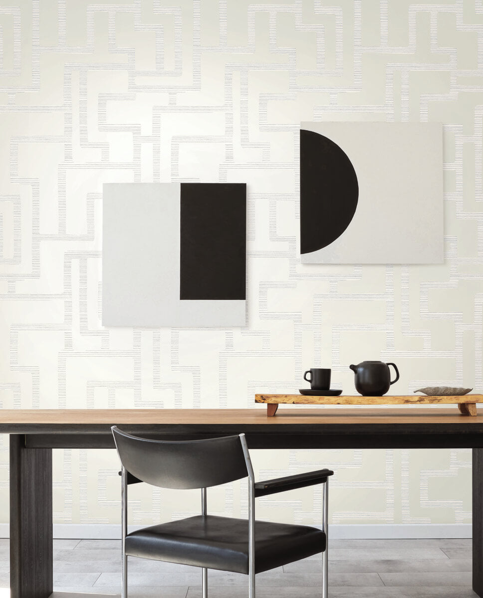 York Black & White Resource Library Graphic Polyomino Wallpaper - Pearl