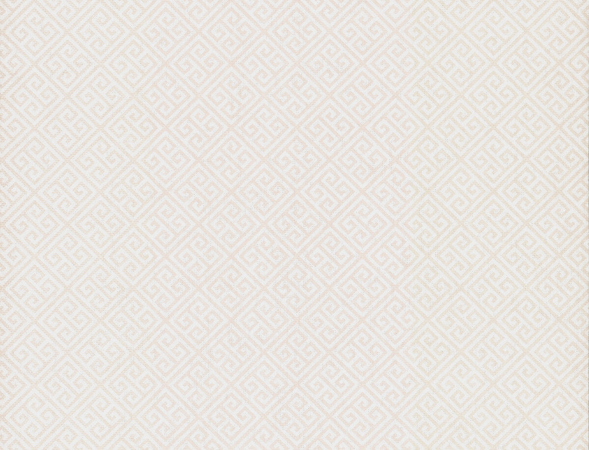 A classic Greek meander motif is printed in matte, pearl, and metallic upon natural paper weave in pattern Grecian Geometric.