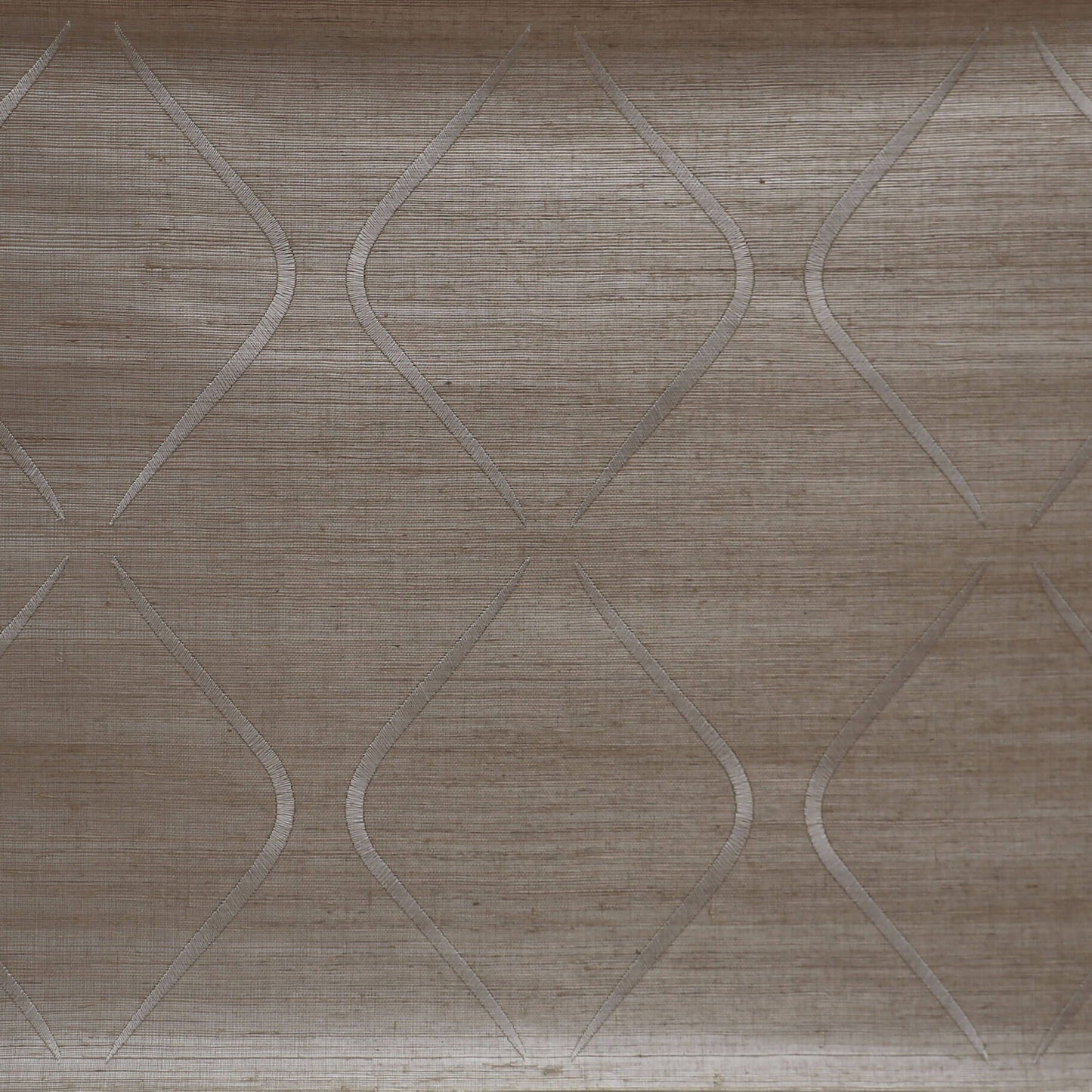 A large diamond design is embroidered against finely woven organic grasscloth creating the scintillating Candice Olson Marquise wallpaper. Handcrafted from natural grasses, this product is woven for a natural effect, has a paper backing, and adds a warm effect to a room.