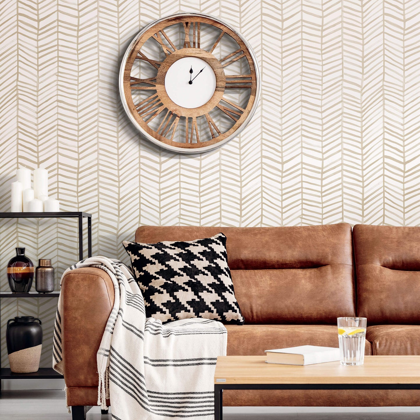 CatCoq Herringbone Peel & Stick Wallpaper - Tan & White
