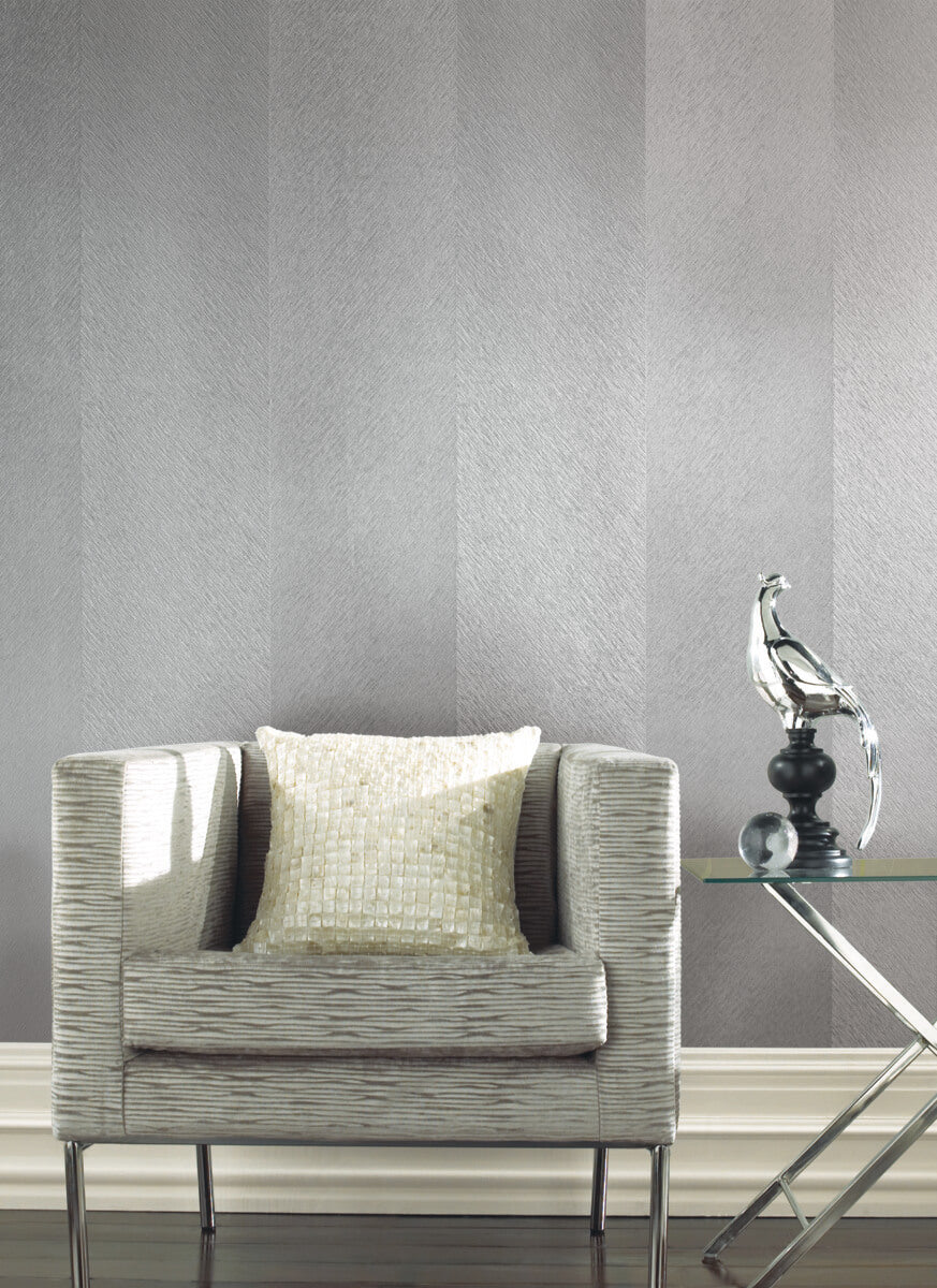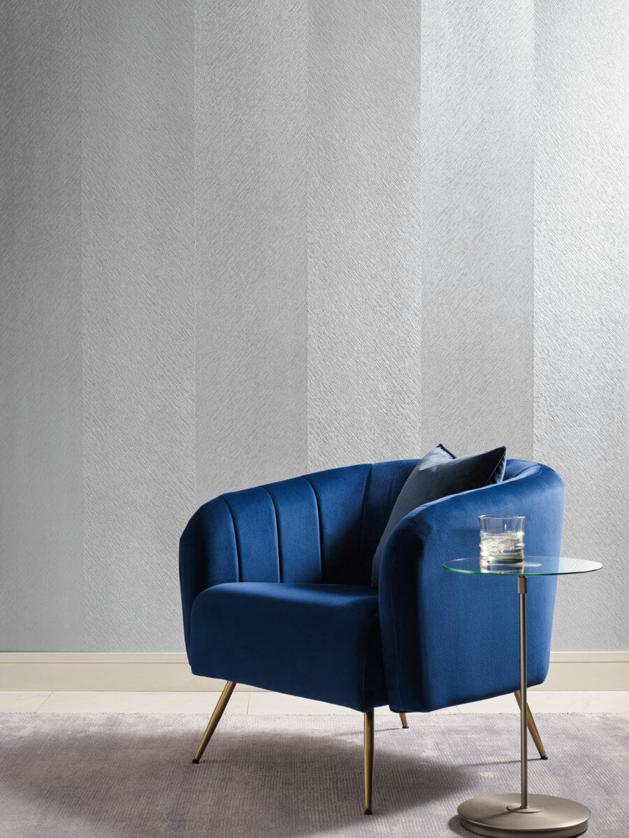 Wide stripe pattern Etched Chevron finish creates a play of light within each panel when offered in either matte color or metallic grounds. The organic texture and shimmering allure which defines the second volume of this sought after design duology brings new vision and identity to the signature of luxury interiors.