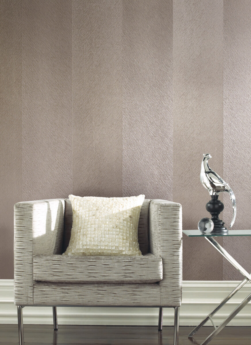Wide stripe pattern Etched Chevron finish creates a play of light within each panel when offered in either matte color or metallic grounds. The organic texture and shimmering allure which defines the second volume of this sought after design duology brings new vision and identity to the signature of luxury interiors.