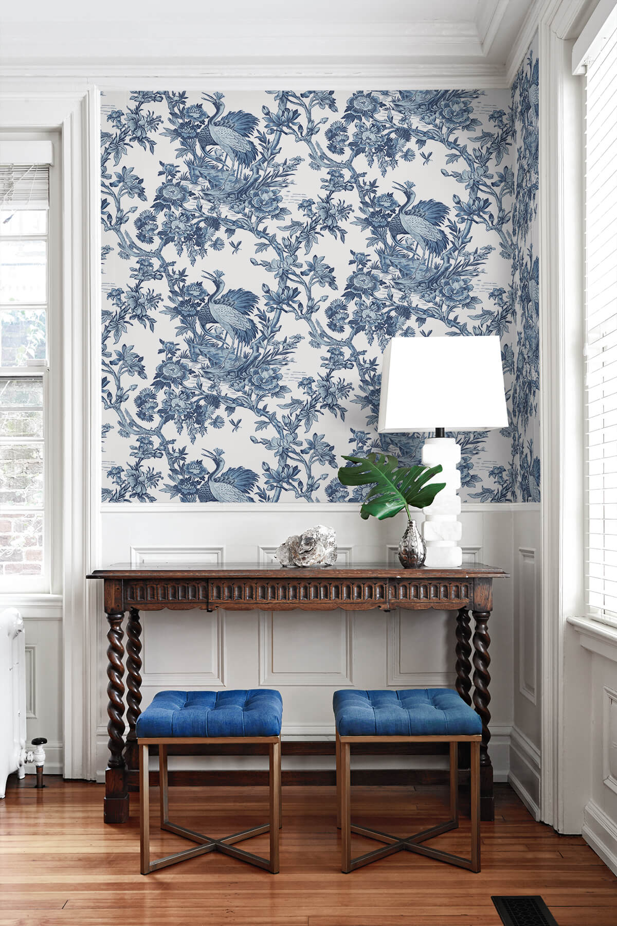 Seabrook DuPont Crane Toile High Performance Wallpaper - French Blue