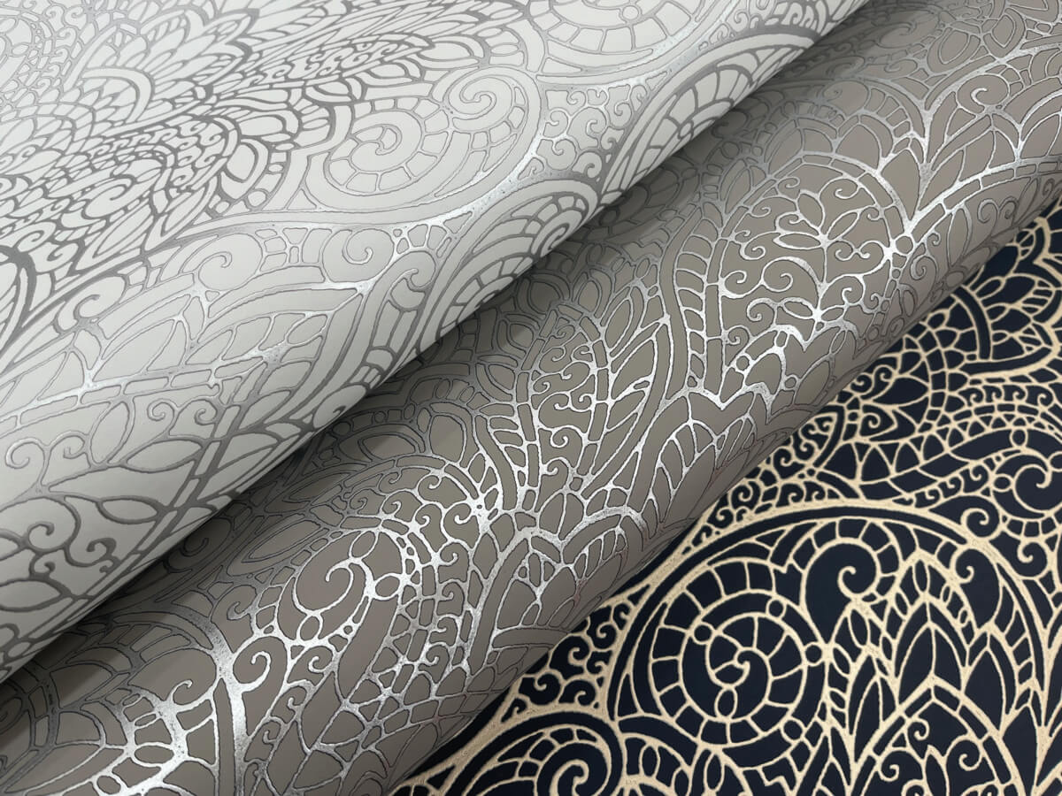 Paradise, a richly patterned damask, creates an elegant wall wrap when interpreted in shimmering liquid metallic. Mirroring the principles of Candice Olson’s core beliefs and design aesthetics, classic styles are reinterpreted to create magnificent wallpapers that are contemporary and timeless. The essence of both beautiful design and a beautifully designed home achieves the look of timeless luxury with Candice Olson designer wallpaper.