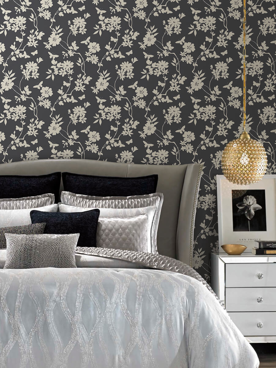 Trailing botanicals and butterflies, in raised silhouette, sparkle with the radiant shimmer of metallic in pattern Flutter Vine. Mirroring the principles of Candice Olson’s core beliefs and design aesthetics, classic styles are reinterpreted to create magnificent wallpapers that are contemporary and timeless. The essence of both beautiful design and a beautifully designed home achieves the look of timeless luxury with Candice Olson designer wallpaper.
