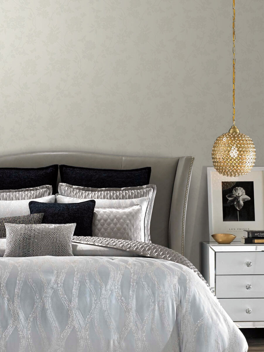 Trailing botanicals and butterflies, in raised silhouette, sparkle with the radiant shimmer of metallic in pattern Flutter Vine. Mirroring the principles of Candice Olson’s core beliefs and design aesthetics, classic styles are reinterpreted to create magnificent wallpapers that are contemporary and timeless. The essence of both beautiful design and a beautifully designed home achieves the look of timeless luxury with Candice Olson designer wallpaper.