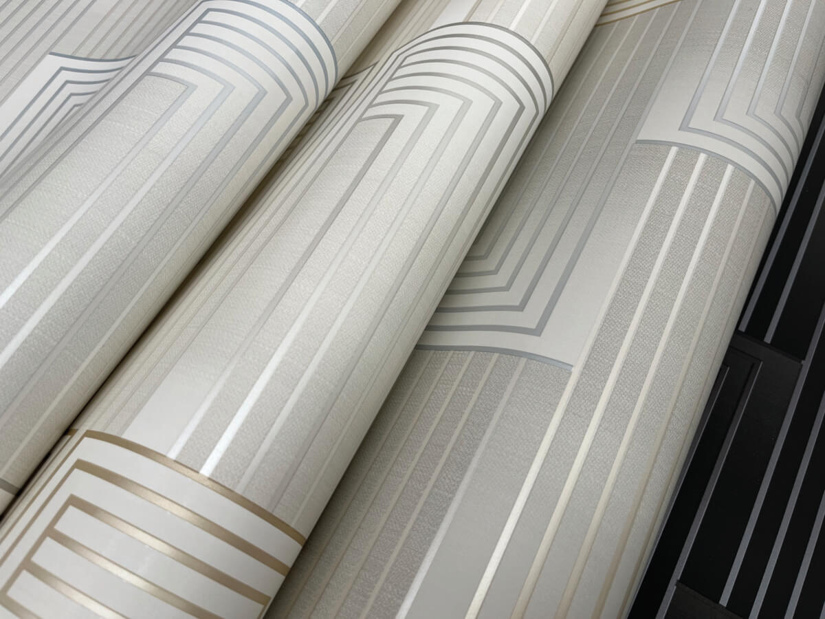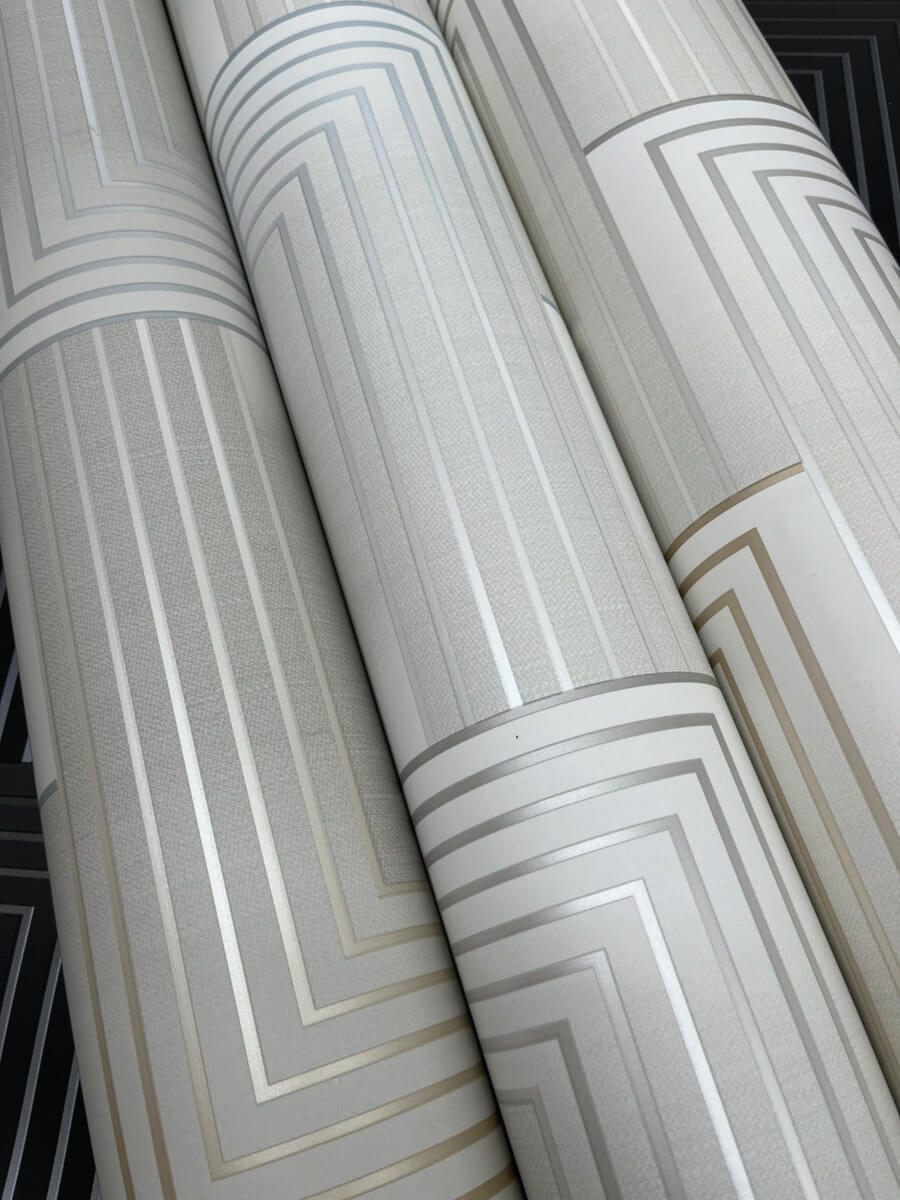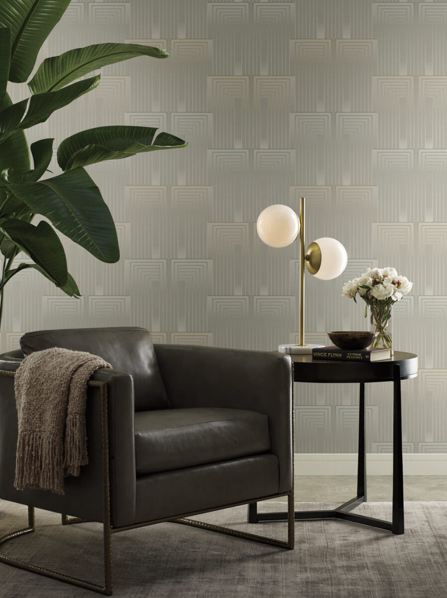 Art Deco linear rectangles glow with a metallic sheen that inspires the name of pattern Vanishing. Mirroring the principles of Candice Olson’s core beliefs and design aesthetics, classic styles are reinterpreted to create magnificent wallpapers that are contemporary and timeless. The essence of both beautiful design and a beautifully designed home achieves the look of timeless luxury with Candice Olson designer wallpaper.