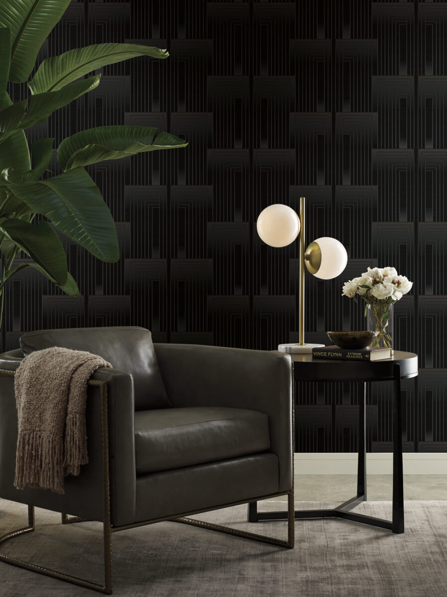 Art Deco linear rectangles glow with a metallic sheen that inspires the name of pattern Vanishing. Mirroring the principles of Candice Olson’s core beliefs and design aesthetics, classic styles are reinterpreted to create magnificent wallpapers that are contemporary and timeless. The essence of both beautiful design and a beautifully designed home achieves the look of timeless luxury with Candice Olson designer wallpaper.