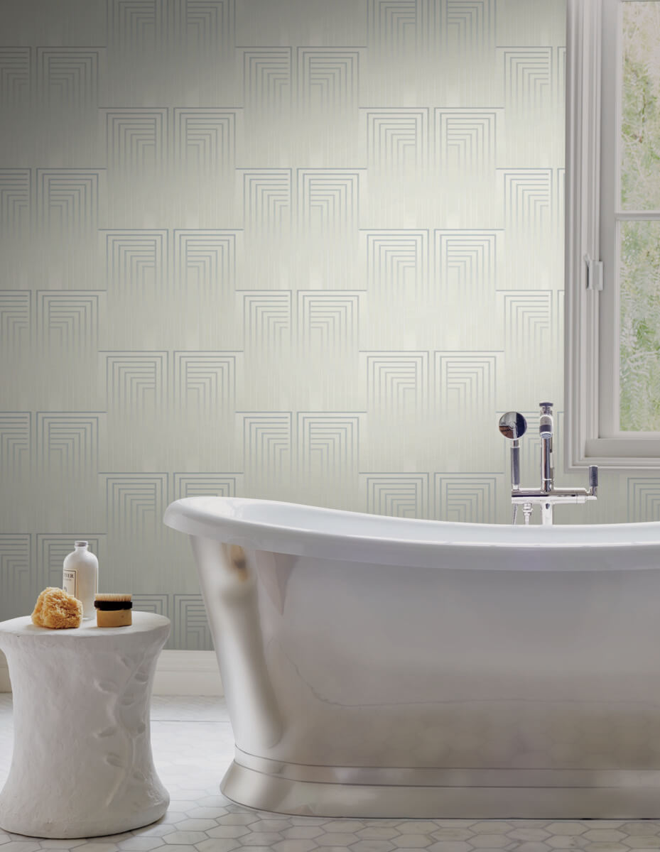 Art Deco linear rectangles glow with a metallic sheen that inspires the name of pattern Vanishing. Mirroring the principles of Candice Olson’s core beliefs and design aesthetics, classic styles are reinterpreted to create magnificent wallpapers that are contemporary and timeless. The essence of both beautiful design and a beautifully designed home achieves the look of timeless luxury with Candice Olson designer wallpaper.