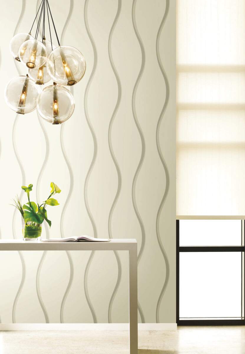 The monochromatic waves of pattern Unfurl create a raised effect with the feeling of a modern sculptural wall installation. Mirroring the principles of Candice Olson’s core beliefs and design aesthetics, classic styles are reinterpreted to create magnificent wallpapers that are contemporary and timeless. The essence of both beautiful design and a beautifully designed home achieves the look of timeless luxury with Candice Olson designer wallpaper.