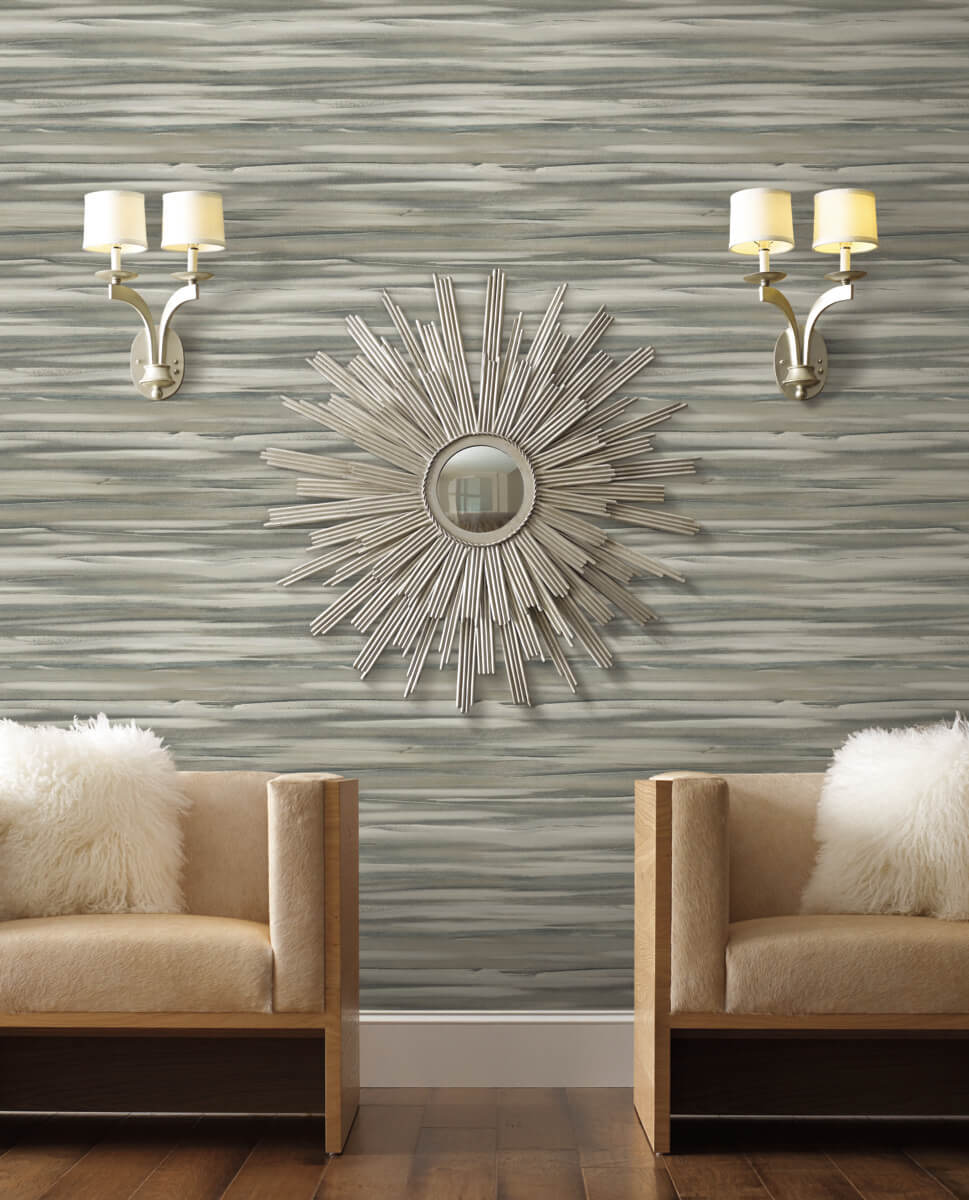The textural canvas of pattern Sanctuary creates a horizontal wash of color in smoky hues and earth tones. Mirroring the principles of Candice Olson’s core beliefs and design aesthetics, classic styles are reinterpreted to create magnificent wallpapers that are contemporary and timeless. The essence of both beautiful design and a beautifully designed home achieves the look of timeless luxury with Candice Olson designer wallpaper.