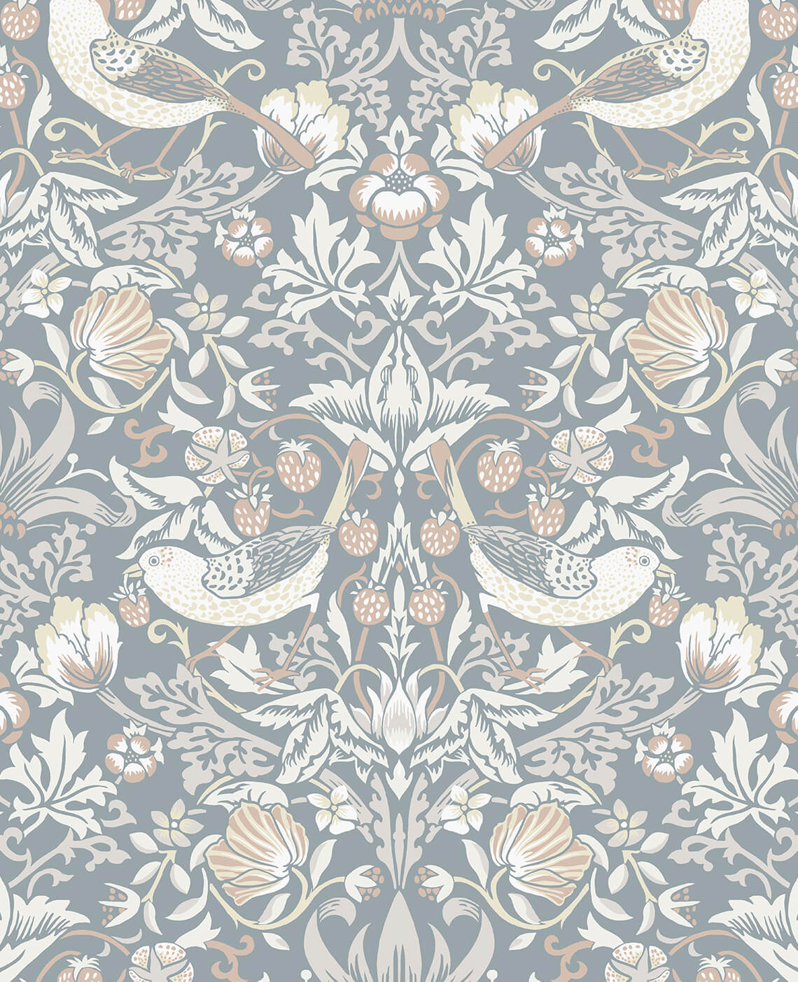 Seabrook Legacy Prints Fragaria Garden Wallpaper - Blue Mist & Blush