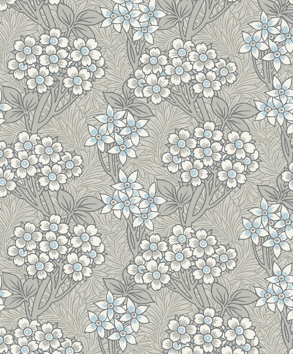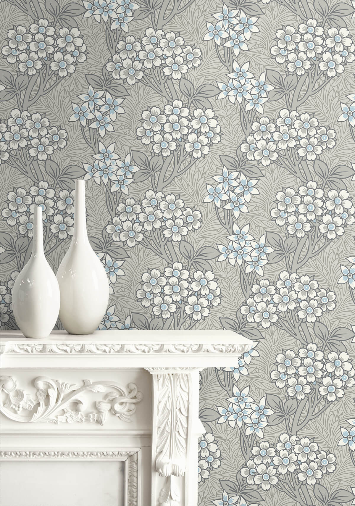 Seabrook Legacy Prints Floral Vine Wallpaper - Daydream Grey & Carolina Blue