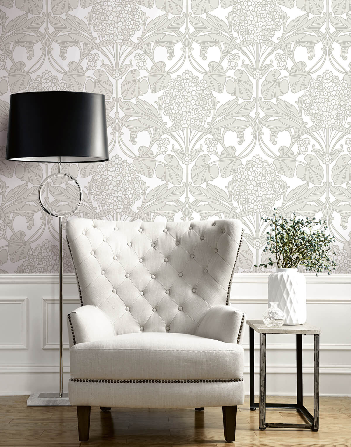 Seabrook Legacy Prints Floral Hydrangea Wallpaper - Pale Oak & Pearl