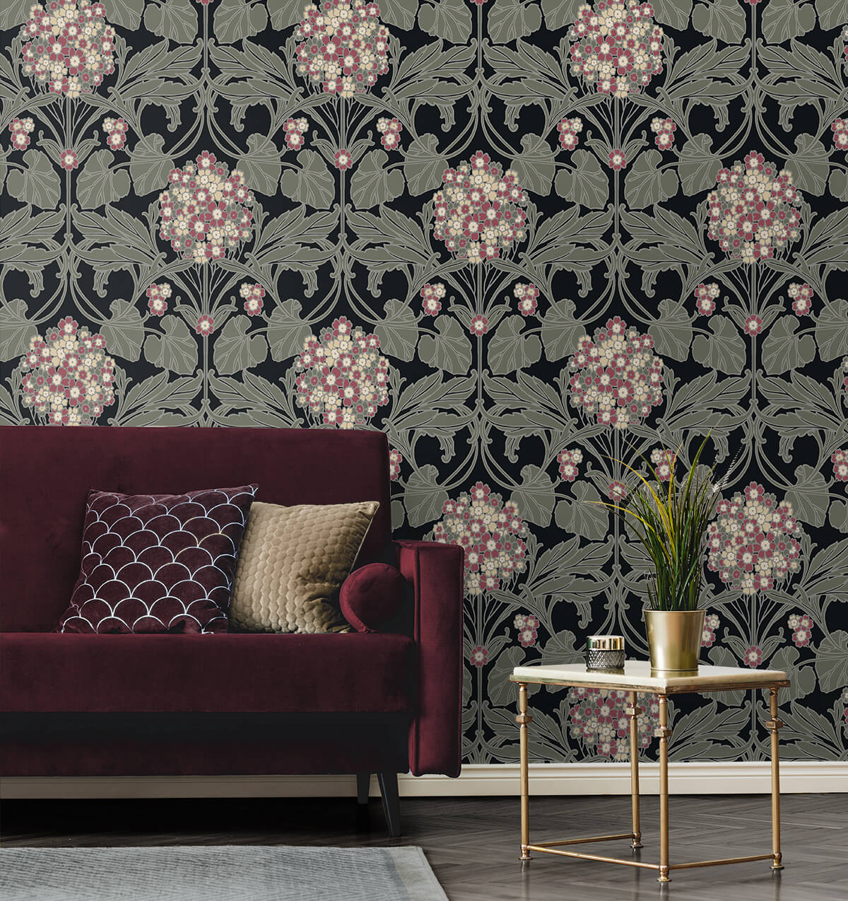 Seabrook Legacy Prints Floral Hydrangea Wallpaper - Ebony & Rose