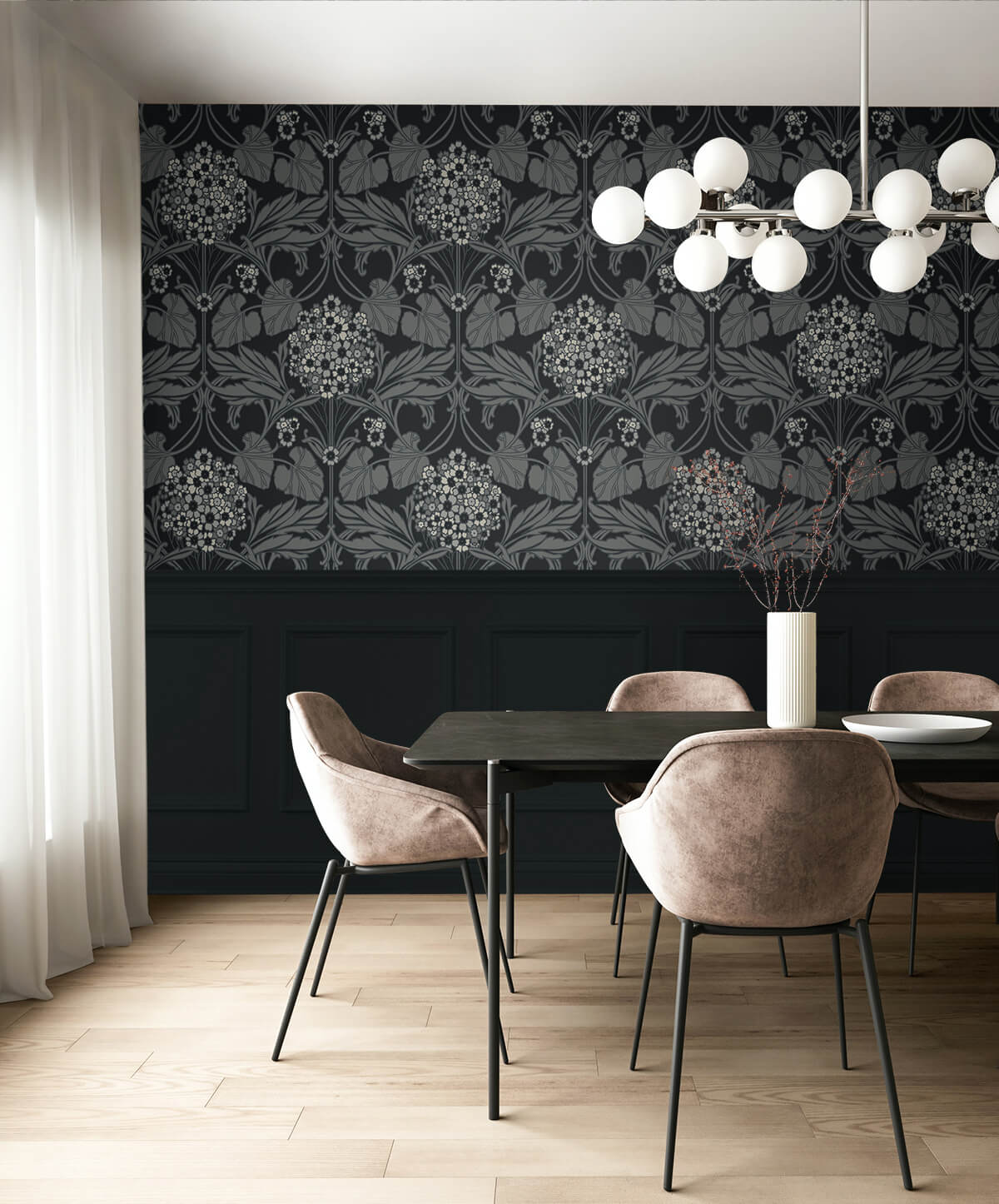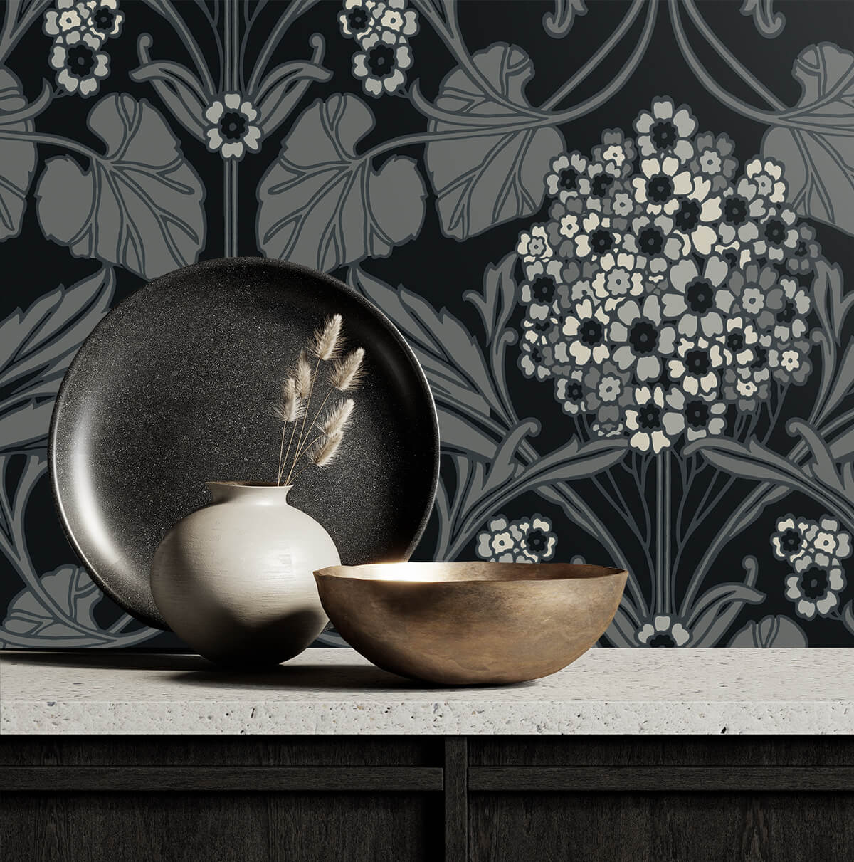 Seabrook Legacy Prints Floral Hydrangea Wallpaper - Ebony & Charcoal