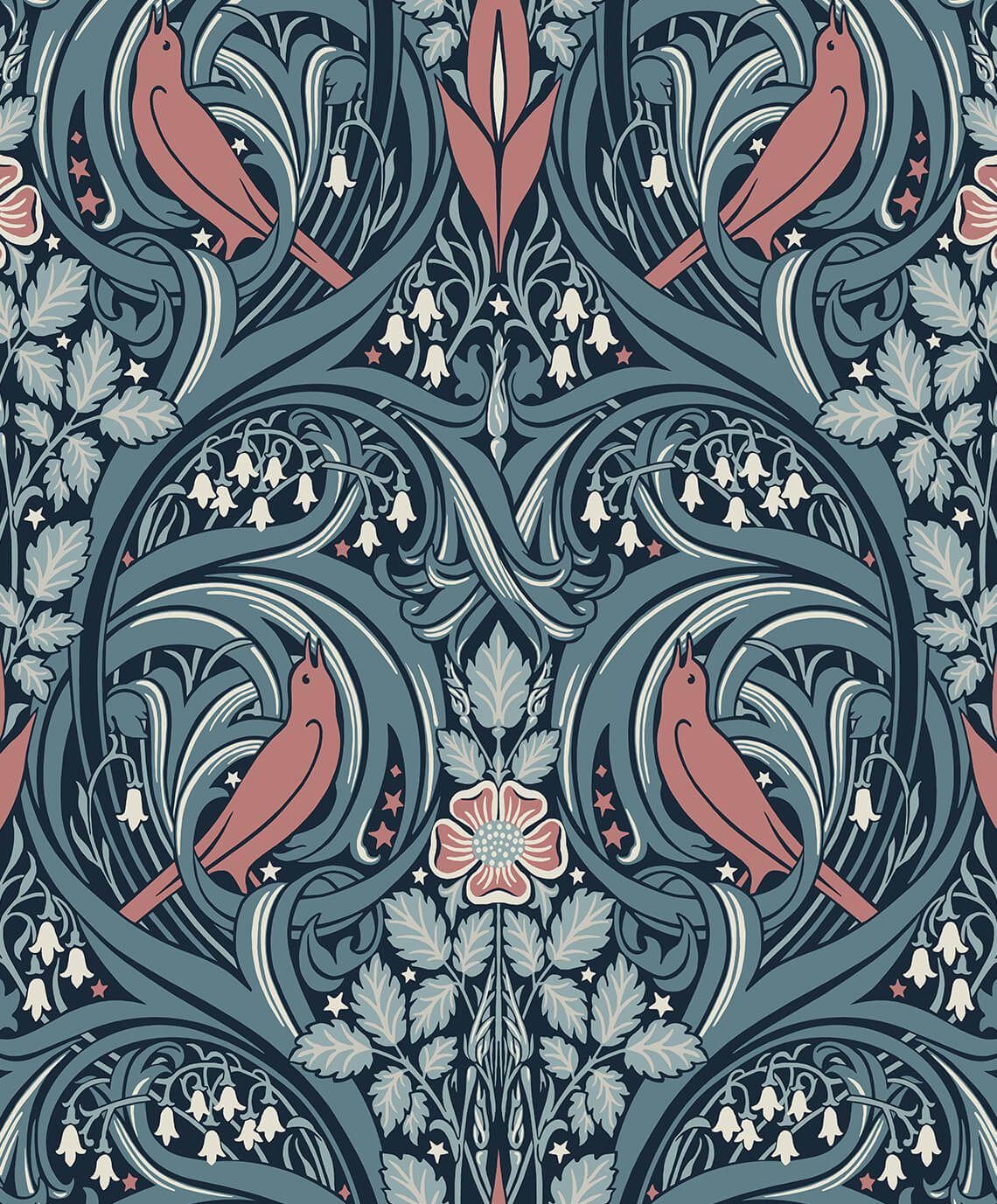 William Morris, one of the founders of the British Arts and Crafts movement. His handcrafted textiles and wallpapers from the Victorian era have stood the test of time. Legacy Prints is a collection of wallpapers inspired by his designs.