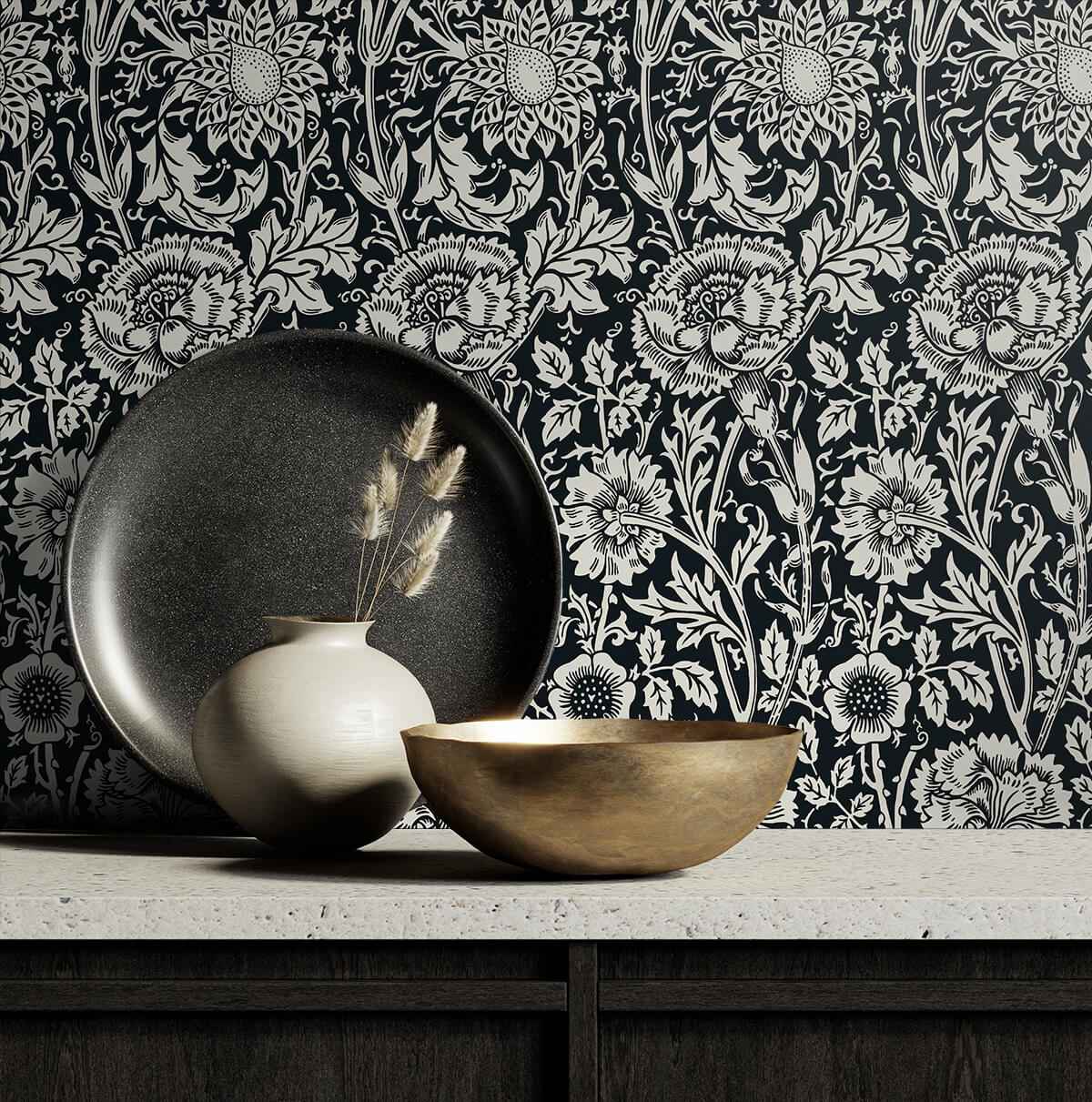 William Morris, one of the founders of the British Arts and Crafts movement. His handcrafted textiles and wallpapers from the Victorian era have stood the test of time. Legacy Prints is a collection of wallpapers inspired by his designs.