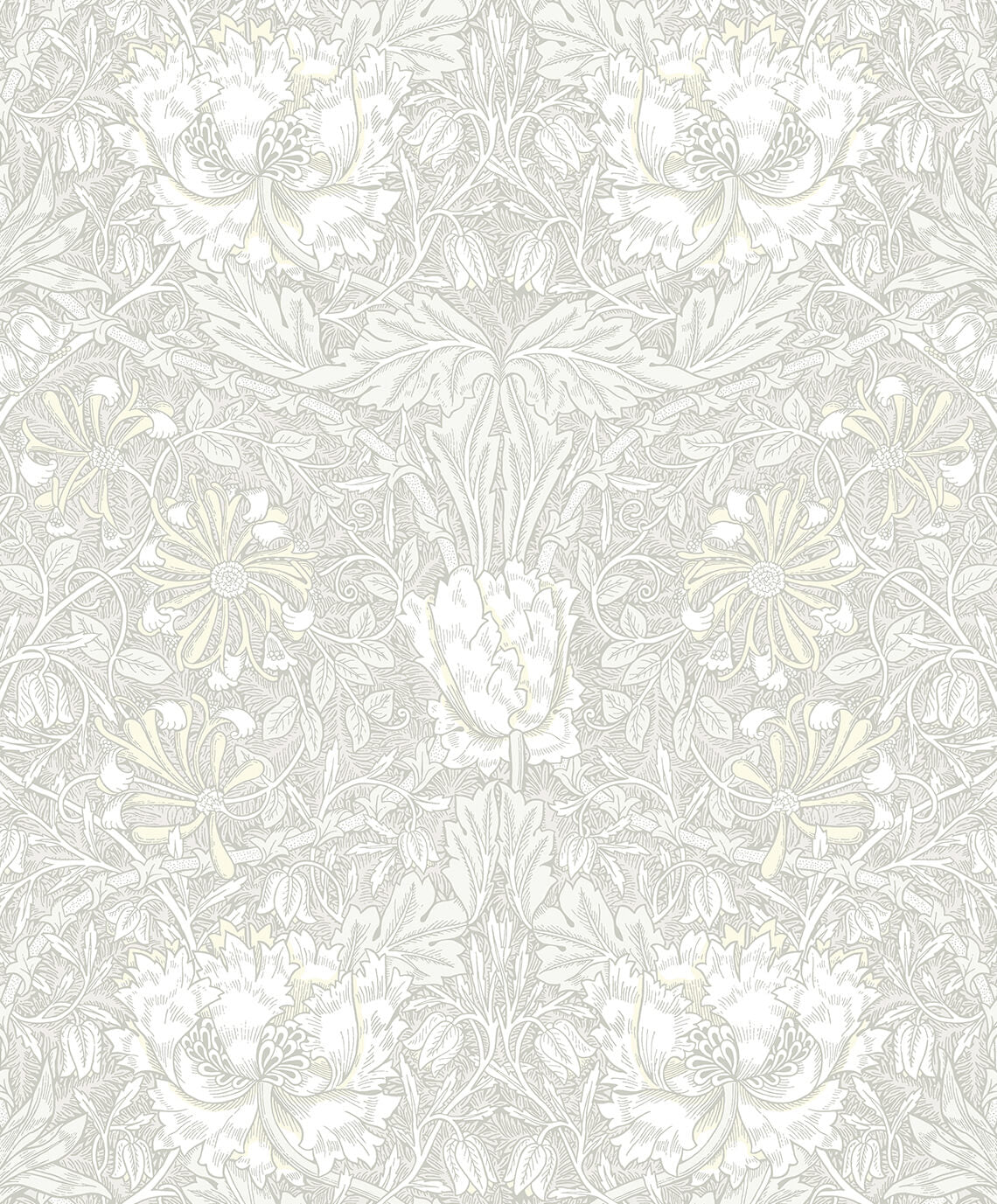 Seabrook Legacy Prints Ogee Flora Wallpaper - Swiss Coffee & Light Grey