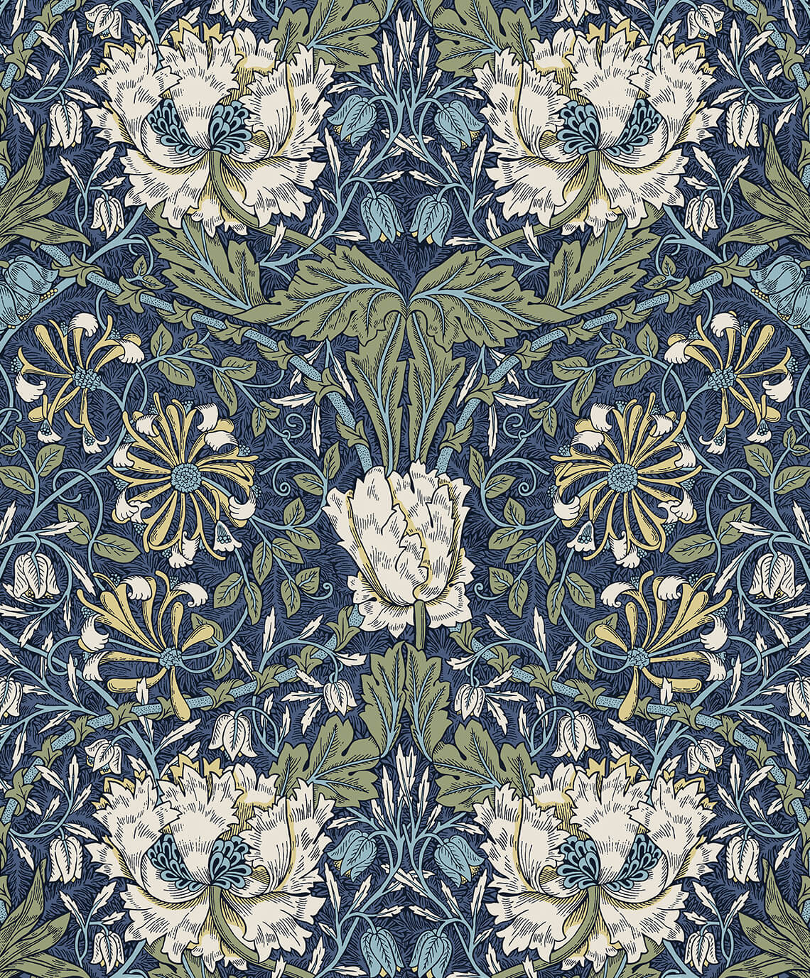 William Morris, one of the founders of the British Arts and Crafts movement. His handcrafted textiles and wallpapers from the Victorian era have stood the test of time. Legacy Prints is a collection of wallpapers inspired by his designs.