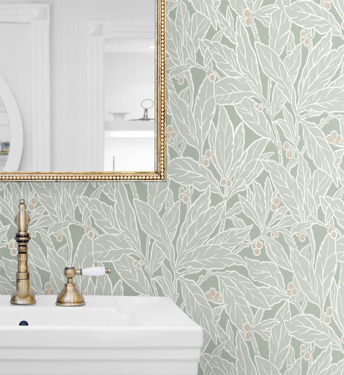 Seabrook Legacy Prints Leaf and Berry Wallpaper - Spearmint